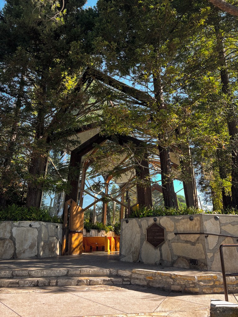 Day three started with Sam going to do work things again but luckily it was her last day with work commitments. Tanya and I decided to walk about a mile down the road from our hotel to go see the Wayfarers Chapel, a stunning church built by Frank Lloyd Wright’s son, Lloyd Wright. I love architecture so I was really interested in seeing this and it did not disappoint. The chapel was completed in 1951. The goal of the design was to show harmony between the nature outside and the inner world of the mind and soul. Sadly, the chapel has now been deconstructed due to risks of landslides and because of how much the ground has shifted over the last few years. Based on what I saw on the chapel website, they are hoping to rebuild it at a new location eventually.