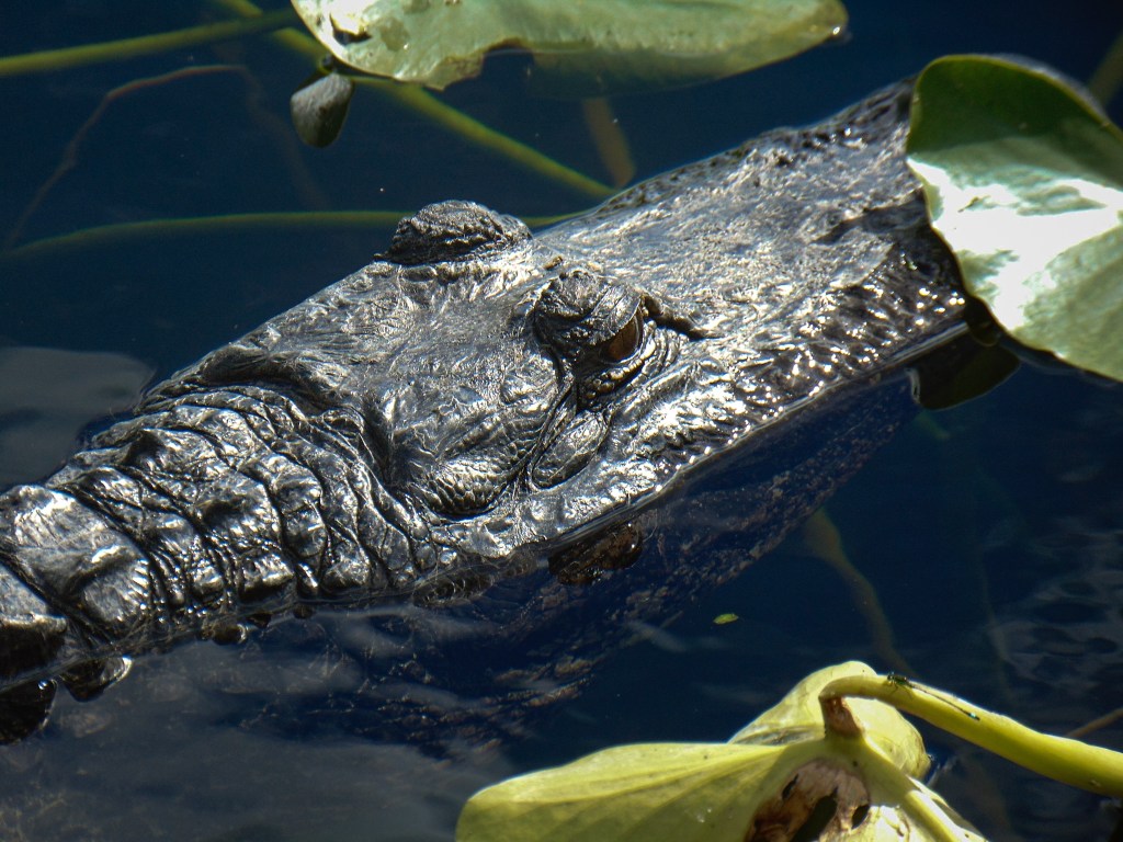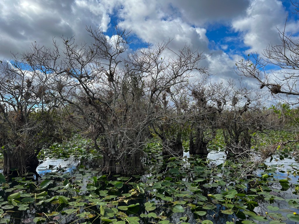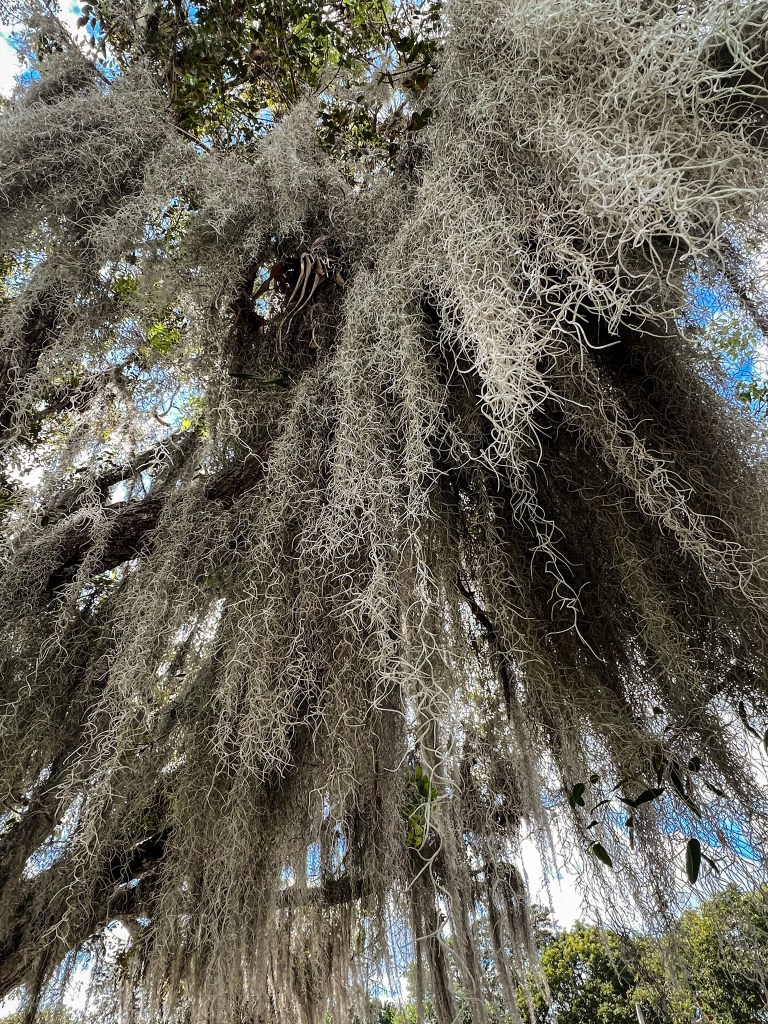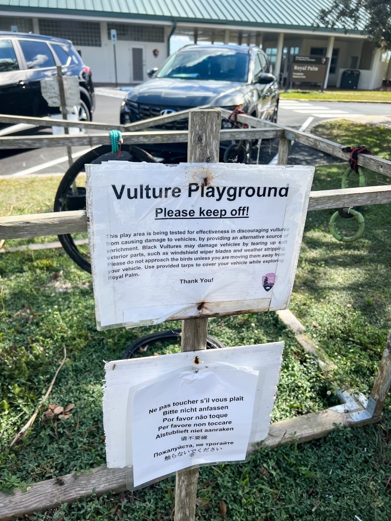I really, really wanted to see a manatee and while they are not as prevelant in southern Florida as they are in the more central part of the state, we were told we could probably see some at the marina in Flamingo, the most southern part of the Everglades. We took the park road from Homestead to Flamingo which was really nice. It was a beautiful sunny day and a great day for a drive. Our first stop was the Anhinga Trail. When we got out of the car we saw a weird, creepy “pen” full of random toys and things. I read the sign that stated vultures would destroy the rubber around car windows so they created a kind of “playground” to hopefully distract the vultures from damaging cars. It was so odd. We also saw a beautiful tree draped with Spanish moss. At first I thought it was part of the actual tree but I later learned its an air plant and will attach to trees and grow independently.