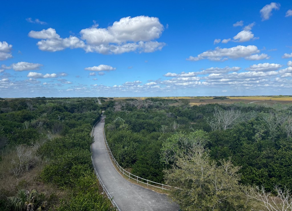About 7 miles into the bike ride we came to the observation tower so we parked our bikes and walked to the top. It offered beautiful views of the river of grass that seemed to go on forever. From there, we headed back on the remaining part of the trail to the visitor center. During our bike tour we also saw so many birds of all kinds. I’ve never been a “birder” but even I was excited seeing so many. After our biking adventure, we headed back to our hotel in Homestead to freshen up. There was a brewpub nearby so we went there to get a flight and got dinner from a food truck parked on site.