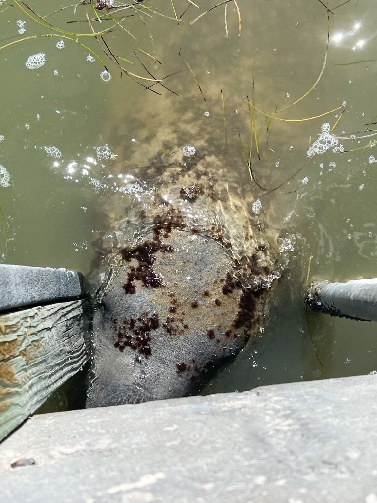 We finally reached our final destination in the afternoon – the Flamingo Visitor Center and Marina. We walked over to the marina where the water was very brackish and cloudy. I was looking down at my feet at the end of the dock saying to Jarrett that if we didn’t see a manatee I would cry (jokingly) when all of a sudden the water started to bubble and the cutest little head emerged. Because the water was so cloudy, I didn’t really get to see the size of the manatee, I only really saw its head and nose. We were told there were about 7 to 8 that lived in the marina. We saw a few come up for air but honestly, it may have been the same one each time. Either way, it was really exciting.