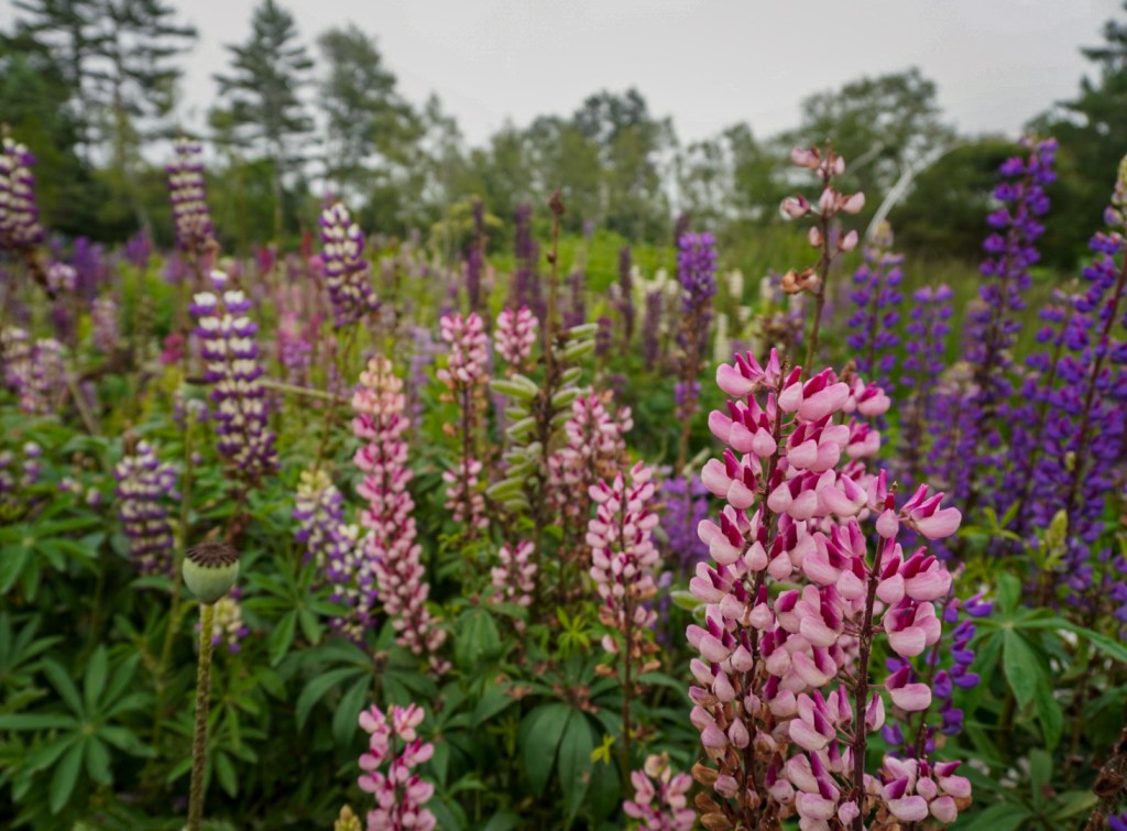 The morning was foggy and rainy so we didn’t miss much skipping sunrise. We started our trip south, grabbing breakfast in Camden and then following the coast to Boothbay for the Coastal Maine Botanical Gardens. Even in the gross weather, we had a great time. The gardens were incredible! I also loved Thomas Dambo’s trolls! He has five trolls located in the gardens but there are many more across the country and the world. We saw three of the five trolls located in the gardens. I want to try to see as many of them as possible – they’re so unique!