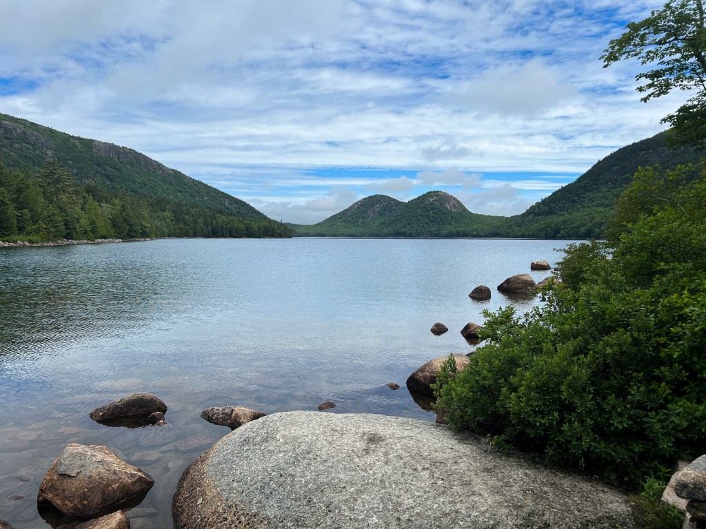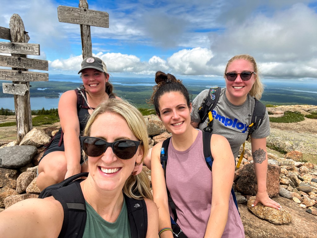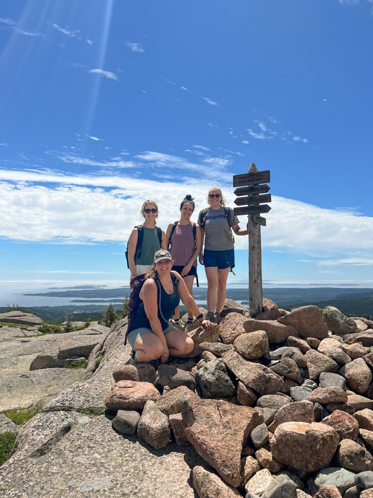 The next morning we left early to go to Acadia National Park. None of the girls had gone before and I was SO excited to share it with them. We did a fun hike, about five miles or so. It was the same as the one Jarrett and I had done back in 2020 (see Acadia National Park post) but I thought it was good one to tackle as it looped around Jordan Pond, offered views of the ocean from the summit and had some fun rock features.