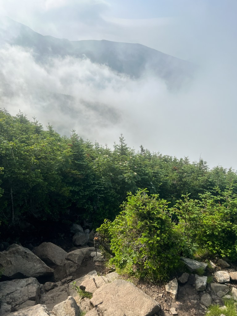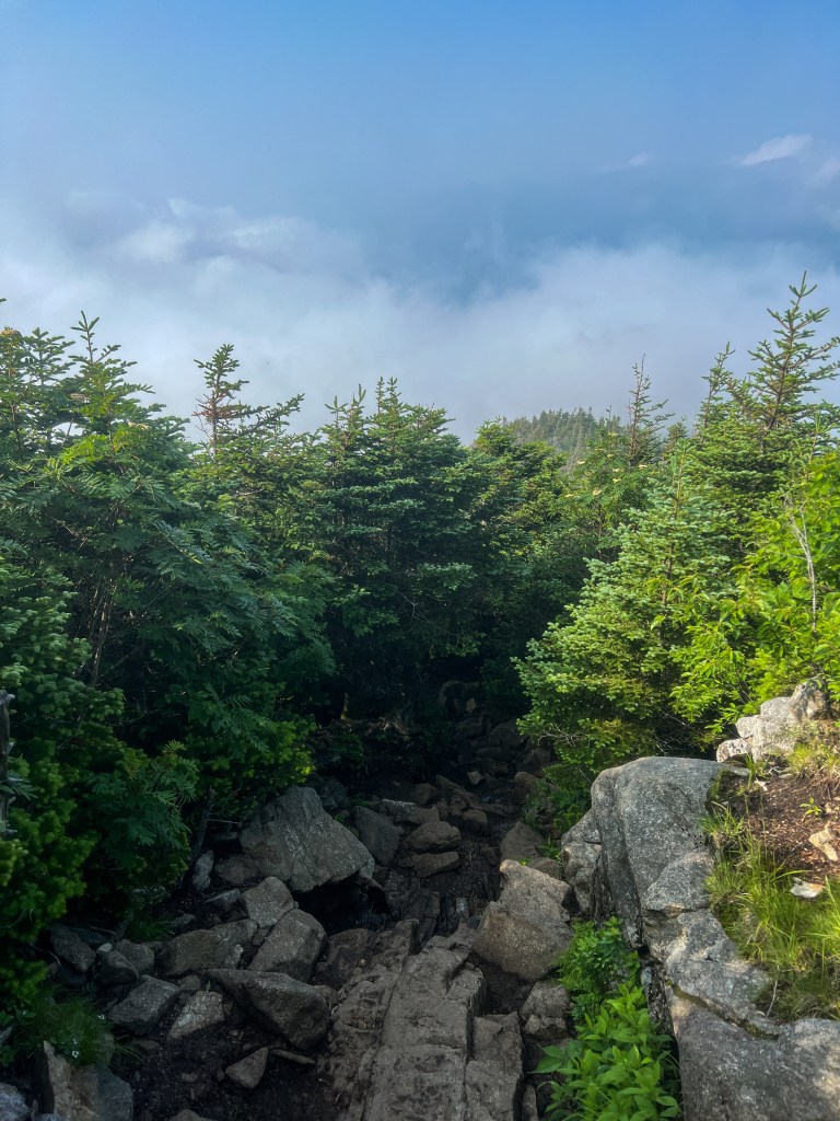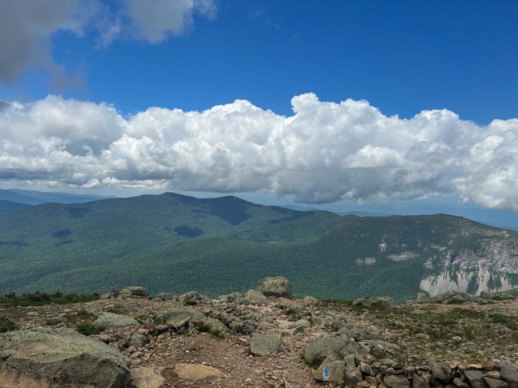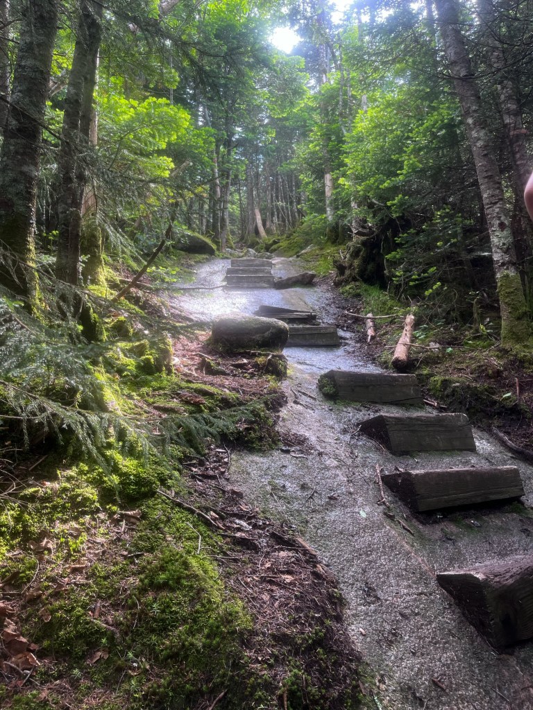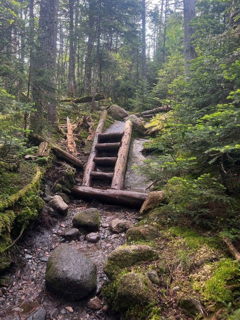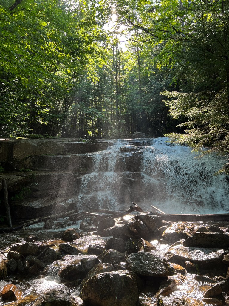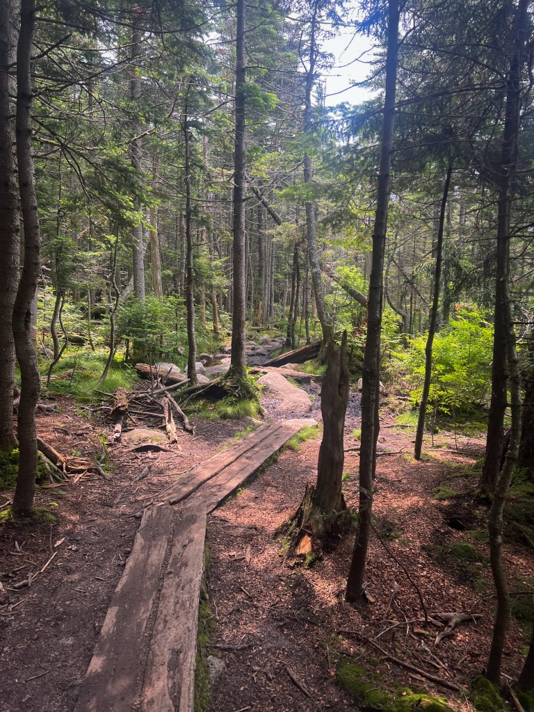 We got to the trailhead early because we knew the parking lot was going to fill up fast since the trail is so popular. You can find the Franconia Ridge loop on AllTrails if it’s something you’d like doing yourself. When we went, it was at the end of June and we had gotten so much rain that month. While it did create some muddy sections, it was all worth it. There were a few designated waterfalls along the way but for most of the hike there was cascading water alongside the trail. It was stunning and made amazing background noise as you hiked through the woods. After we made it passed the falls, the trail started to get a lot steeper! There was a section that made me consider my life choices a few times. Once we made it to the alpine zone I was able to catch my breath, then at the summit of Little Haystack we paused for lunch. Unfortunately this peak doesn’t count as a 4,000 footer due a prominence rule that designates which peaks count, but the views are still beautiful! If you do this trail, I suggest wearing waterproof boots or bring extra socks because there are a lot of water crossings, especially in the spring.