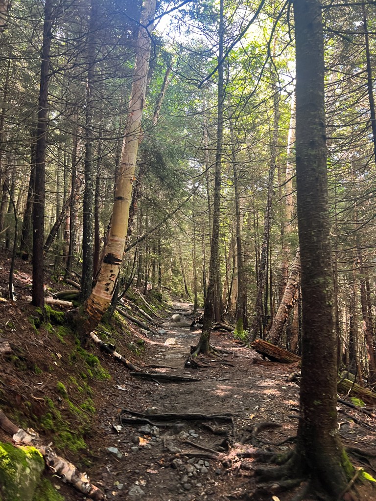 While June 2023 was one of the hardest months for me, it also brought a lot of beautiful memories. One of my absolutely favorite experiences was spending a long weekend scampering through the White Mountains with my friend Liz. Liz lived in New Hampshire briefly, for just a few years. We met at our CrossFit gym and immediately hit it off. Sadly, only a few years after meeting, Liz’s family moved to Colorado. Luckily for me, Liz’s daughters still wanted to come to New Hampshire for summer camp so the last few summers we’ve been able to meet up once or twice to go hiking when she’s on the east coast. In 2023 we wanted to do something bigger than our normal day hikes so Liz suggested hut-hiking. In New Hampshire, we have a few Appalachian Mountain Club huts where you can stay on the mountains. The accomodations are very rustic – no showers, no electricity…but I’ll get into that more later. Liz had stayed at a few AMC huts with her family in the past and suggested we should do it and I immediately agreed. Growing up I had never been to summer camp and that’s the kind of vibes I was getting from the pictures of the huts so I couldn’t wait for our adventure. One thing about my friendship with Liz – we are very similar – especially our adventuring style. When we hike, we inspect every fern, mushroom, tree, rock, etc. We take a million pictures of all the flora and fauna. We lounge around and soak up the views on the summit and eat lots of snacks. We are never in a hurry. We are just happy to be out on the trail and being excited by everything. We titled our weekend together “Excitable People Doing Exciting Things” if that gives you an indication of our personalities.