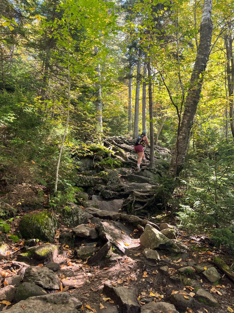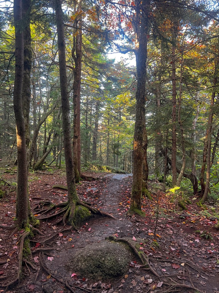 Normally we like to start our hikes early in the morning but this hike we did in the afternoon on a Sunday. We had no problem getting a parking spot as the lot is pretty big. It’s a popular spot though, so keep that in mind. We saw others while we were on the trail, but it wasn’t too busy. I can’t stress enough though how much of a pleasant hike it was – the perfect mix of rock scrambles and classic wooded trails. I was squealing the whole hike about how cute it was. There was even an alpine bog near the summit that I thought was so charming.