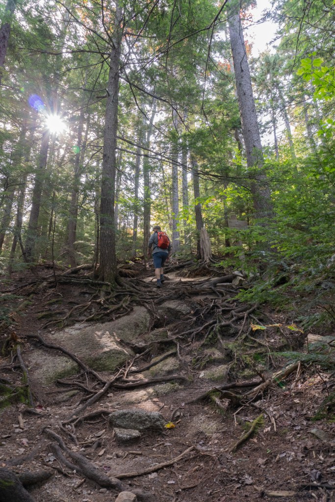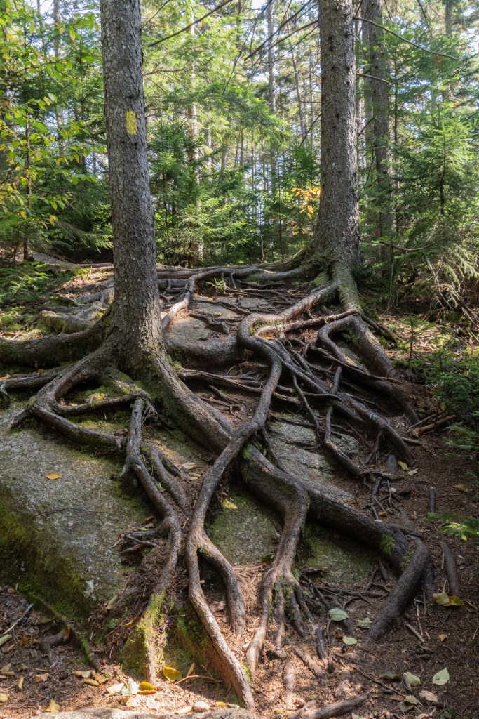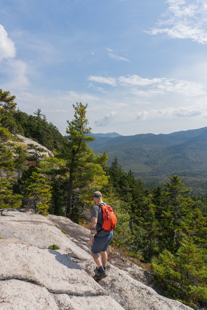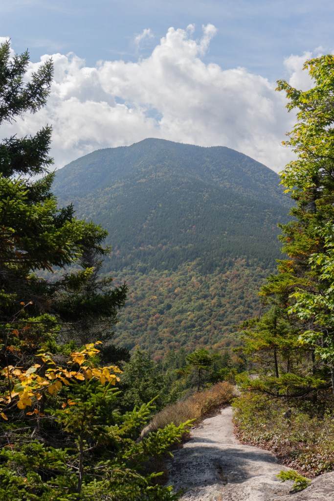 About a mile from the summit is a short spur trail to Allen’s Ledge, which offers beautiful views. I had fun looking for moose here and taking some shots with my telephoto lens. The summit of Hedgehog has plenty of places to sit for a snack and you can see Mount Passaconway towering above. The loop takes you along the east ledges, which continues the scenic views. You can see Mt. Chocorua in the distance too!