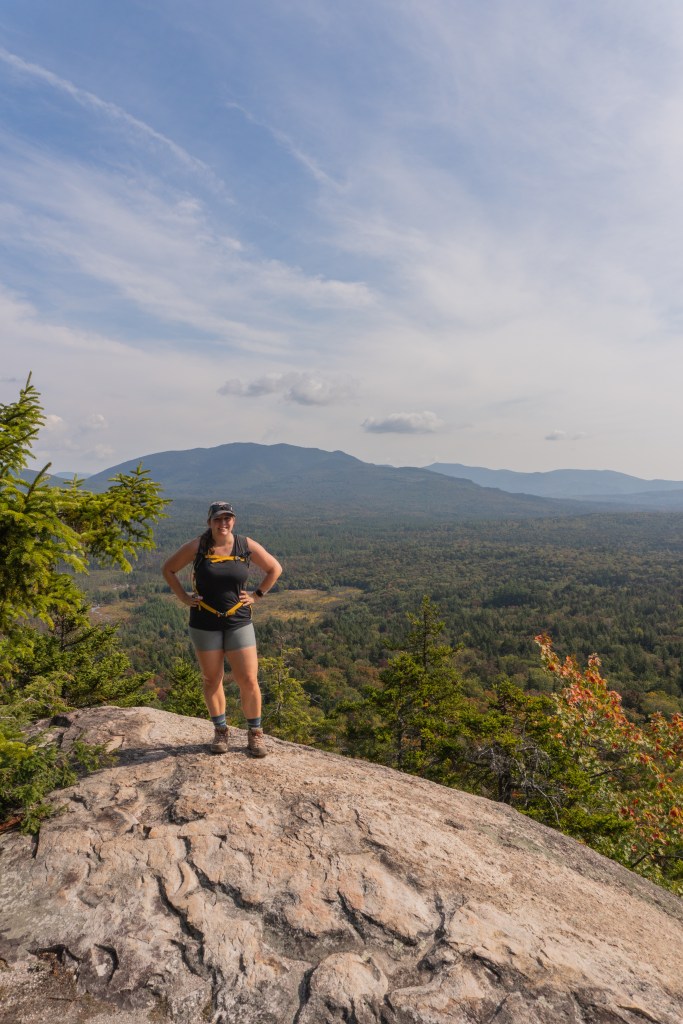 In the fall of 2024, Jarrett and I had a lot of free weekends (which never seems to happen!) so we were able to check a lot of hikes off our list! One of those was Hedgehog Mountain, which is on New Hampshire’s 52 With A View list. We both loved the hike. The parking lot is a good size and it’s free! There are no bathrooms though, so keep that in mind. We used the U.N.H. Trail, which can be found on AllTrails. The beginning of the trail is flat and I believe is used for cross country skiing during the winter. It quickly starts to gain elevation though in classic New England style.