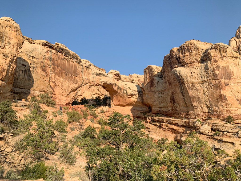 - Hickman Bridge – We loved this hike. It wasn’t too strenuous but we were exposed to the sun for a lot of it. The arch itself is really beautiful. We also saw some bighorn sheep ewes relaxing on the cliffs above the trail.