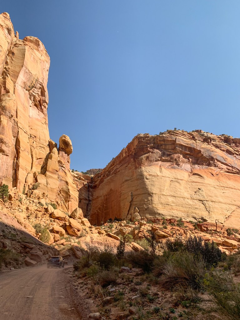 Capitol Reef was the third of Utah’s five National Parks that we visited. After being above the canyons in Canyonlands, this park has us looking up at the canyon walls from below. If you want to read more about our full experience in Utah, you can check out my blog post here!