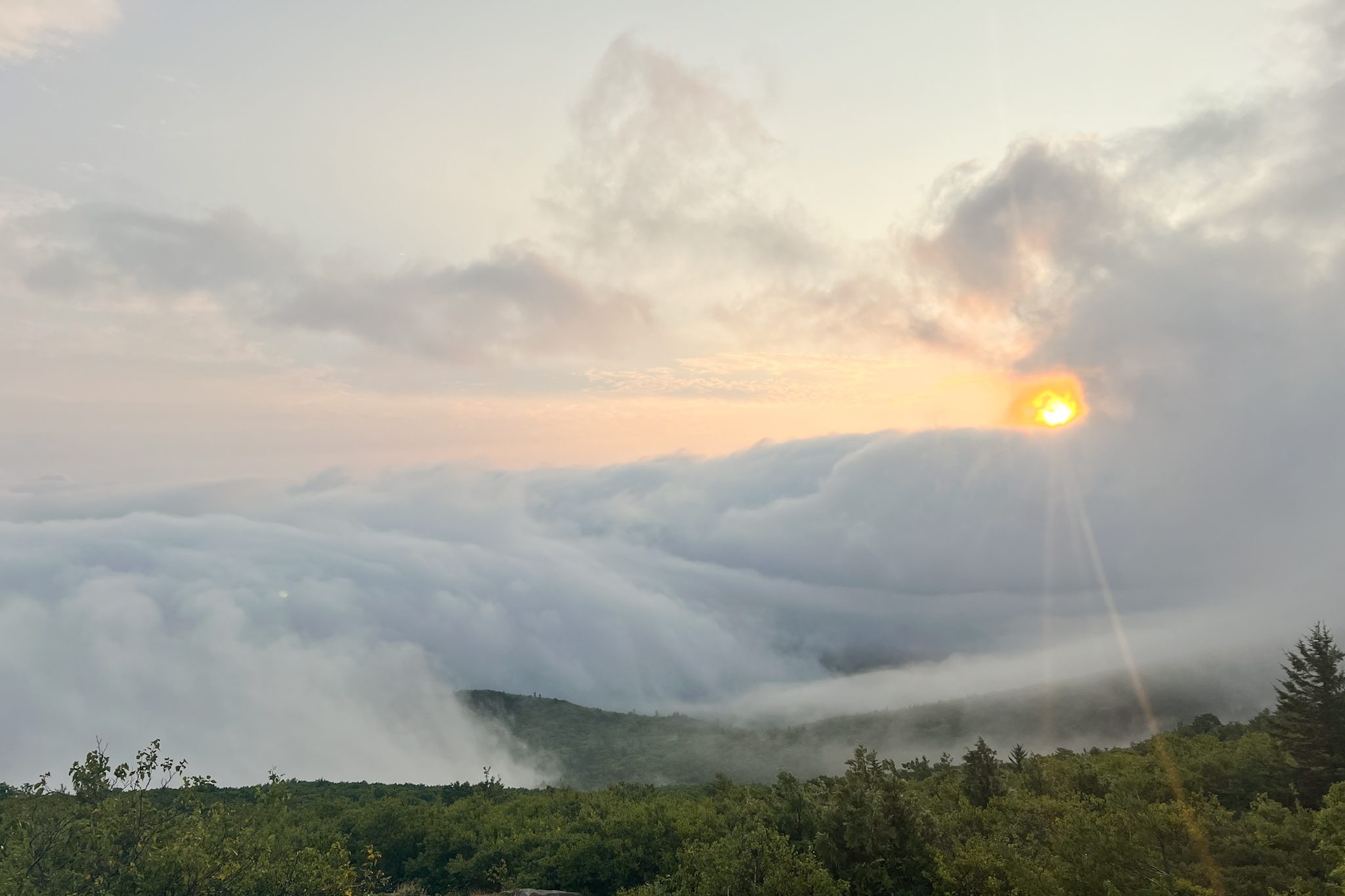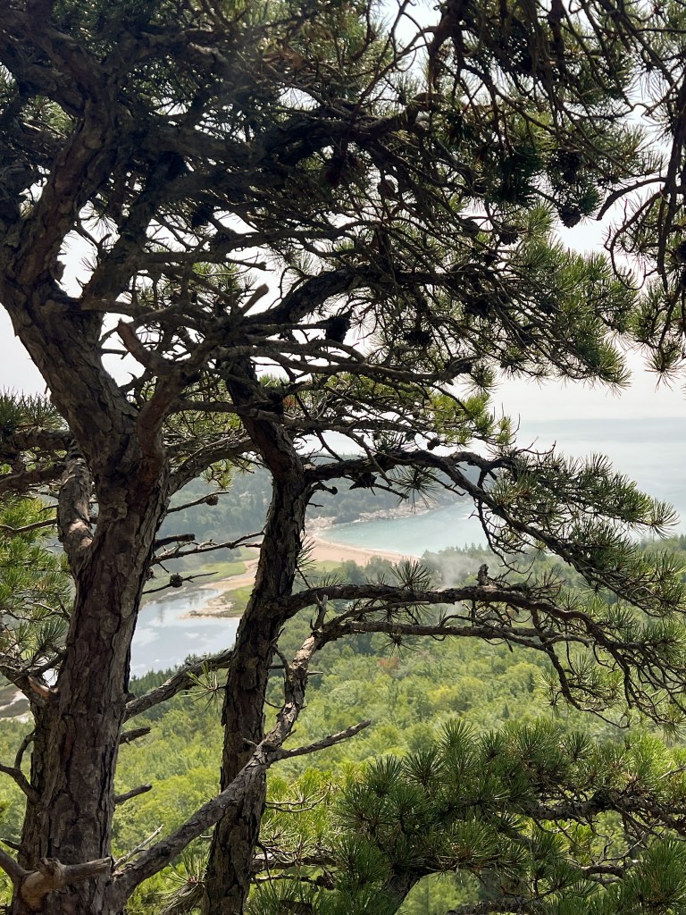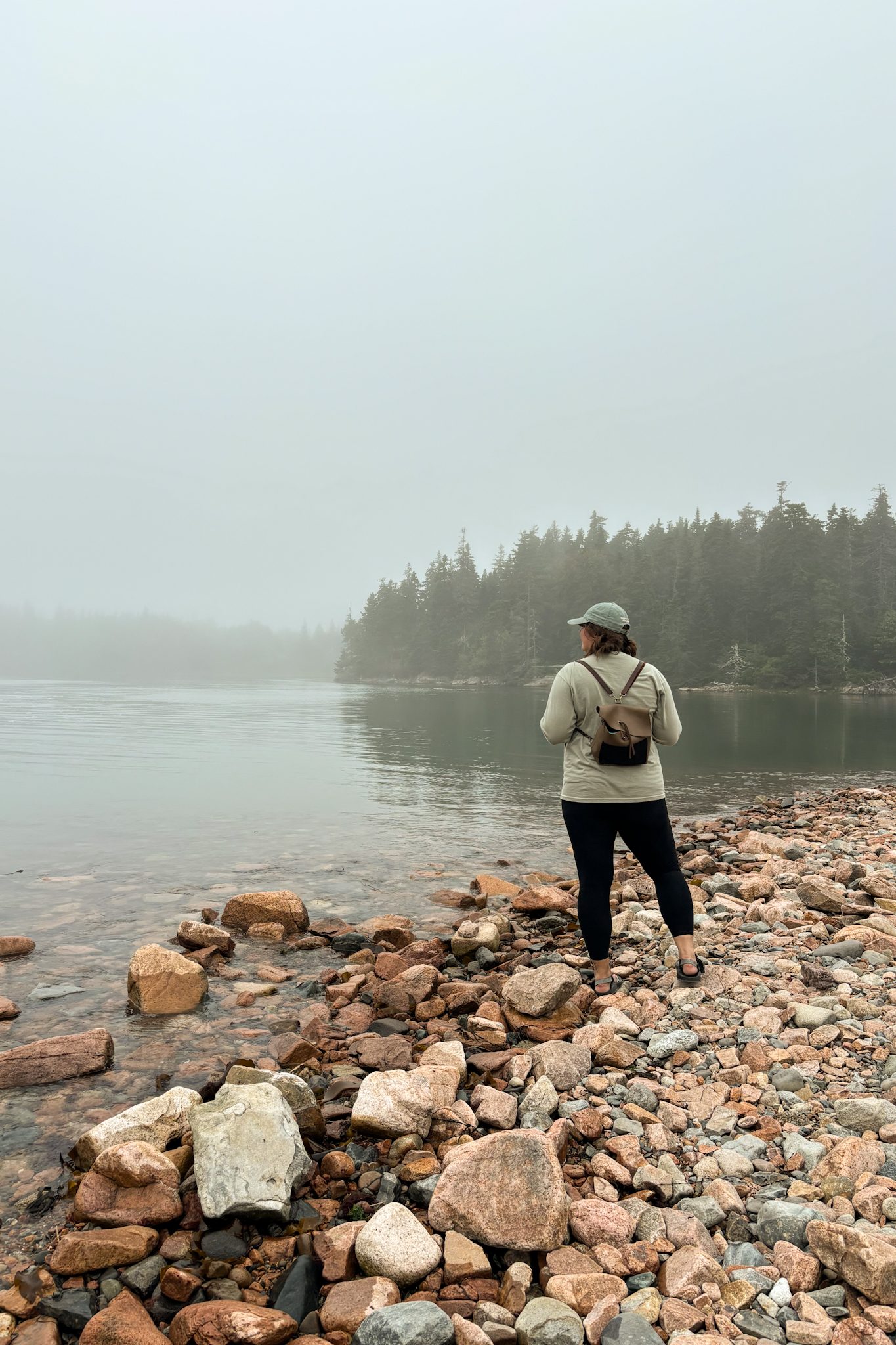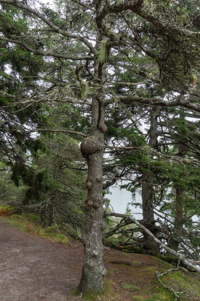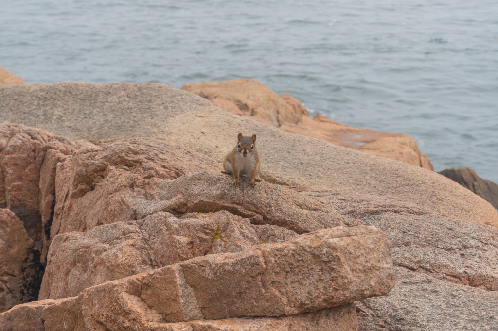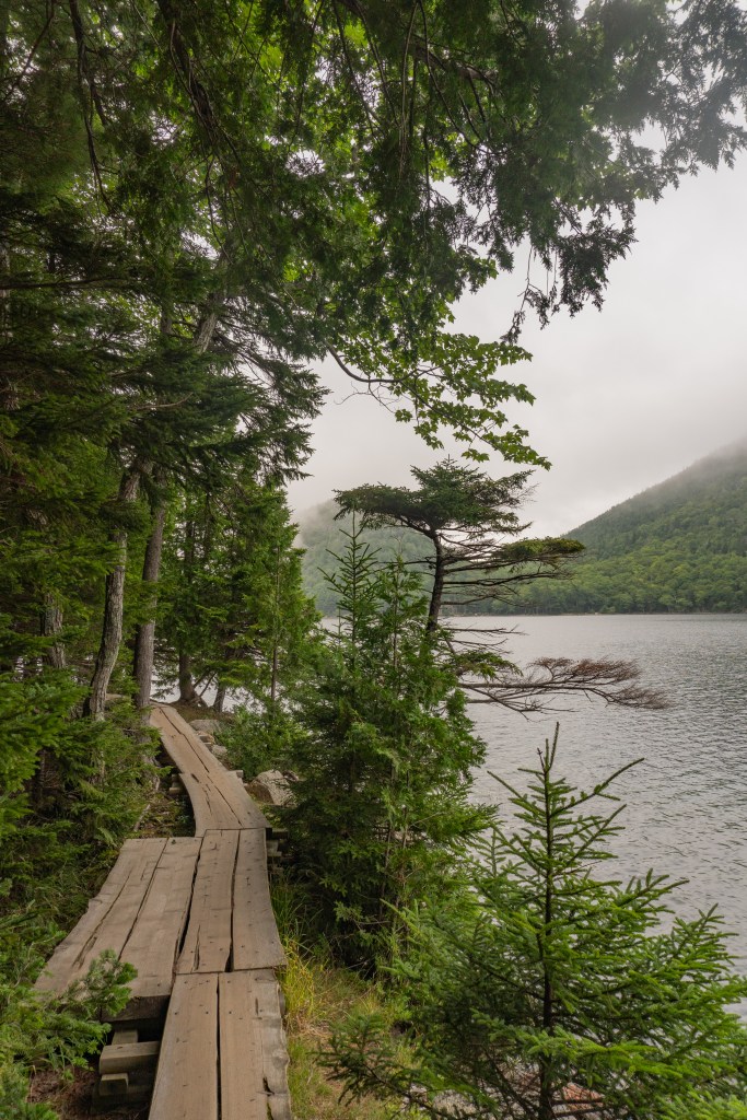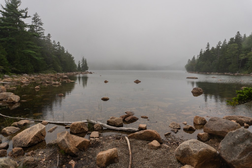We all started the next morning at Cadillac Mountain for sunrise, but we didn’t have good luck and were socked in at the summit. However, on our ride back down the summit road, the fog started to part and we got to see beautiful cloud inversions. Some people went rock climbing afterwards and the rest of us went to see Bass Harbor Head Light, one of the well-known lighthouses in the park. It was pretty and the overcast skies gave it a dramatic vibe. Then we went over to Ship Harbor Trail, which was a new hike for me. It was easy, but I really enjoyed it and it had some gorgeous, moody views. We all reconvened back at the campsite for lunch.