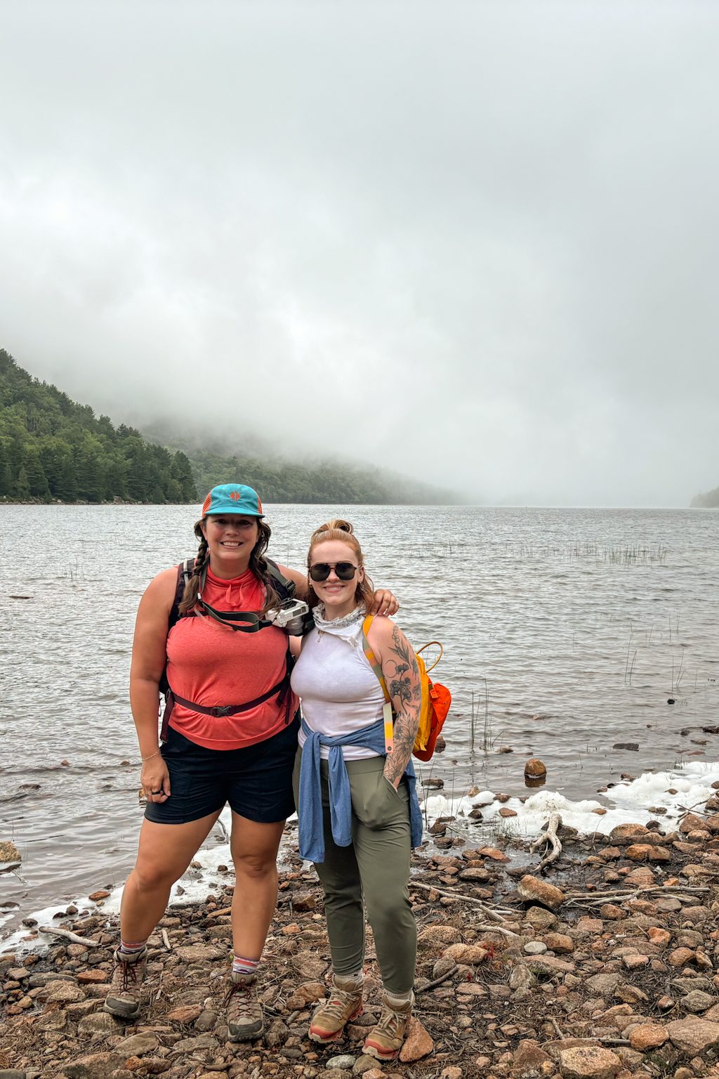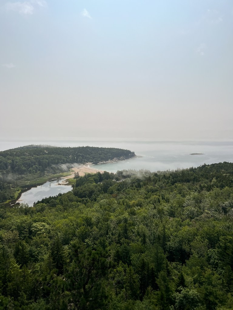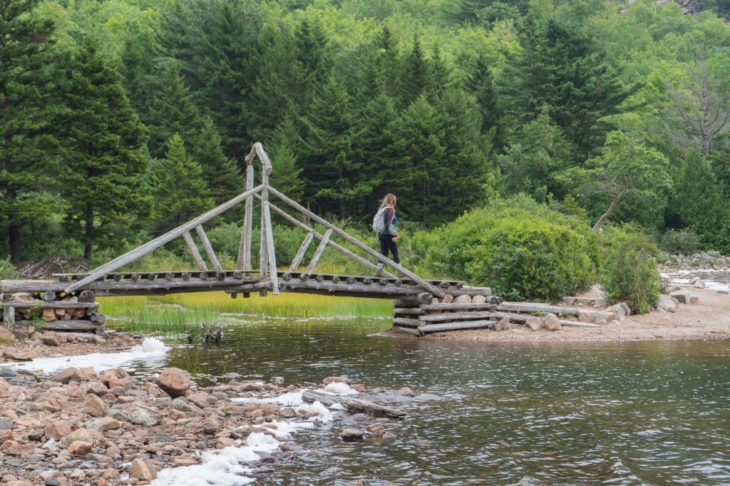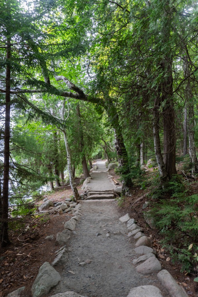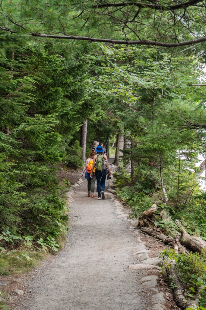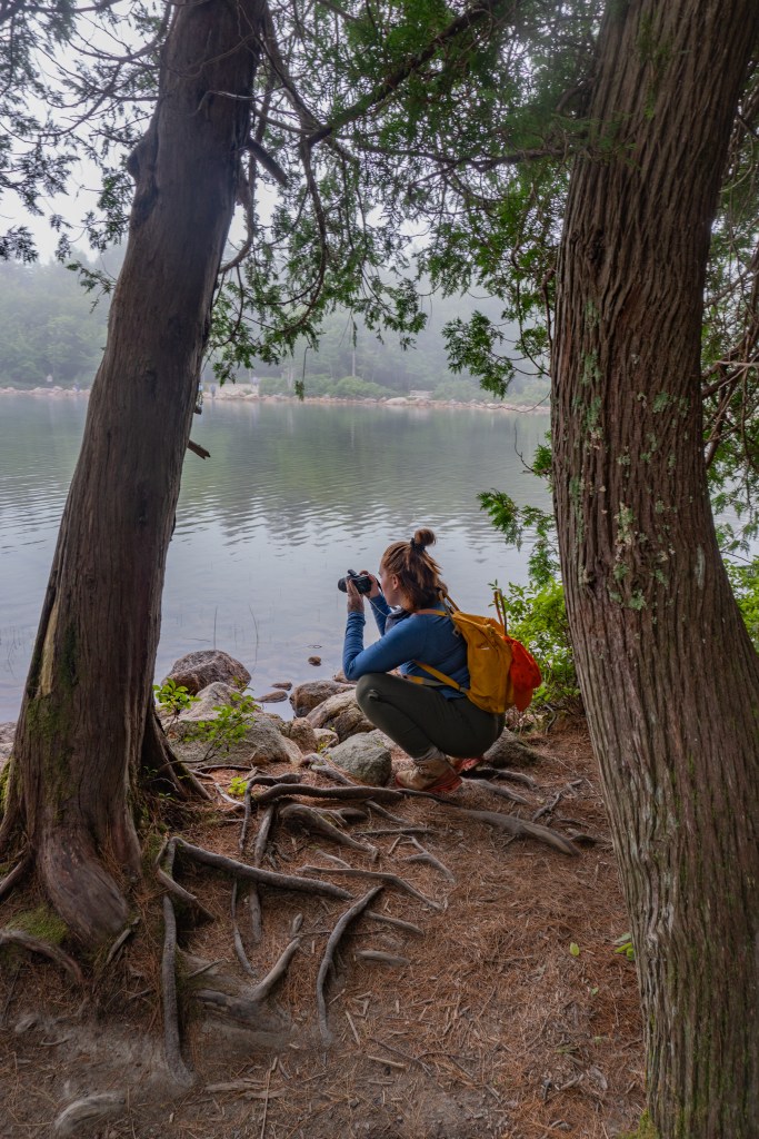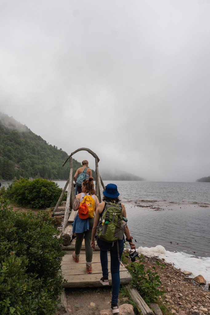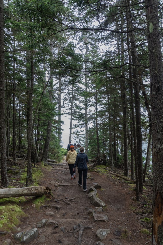 The next day was damp and overcast which was a bit of a bummer, but we all made the best of it. We headed to Jordan Pond for a lowkey, easy hike. We had a few free hours here so we could meander along as fast or as slow as we wanted, which was great for taking photographs. After finishing the hike, we went to Jordan Pond House for their famous popovers. We went back to camp for a quick lunch, then headed back into downtown Bar Harbor for another hike. This one was called the Bar Island Trail and it’s only accessible for a few hours during low tide. You have to plan the hike carefully so you don’t get stranded on the island! It’s an easy hike but it was fun walking across the tidal flat to the island. After dinner at camp, we all turned in fairly early since it was so gloomy out and we had an early morning the next day!