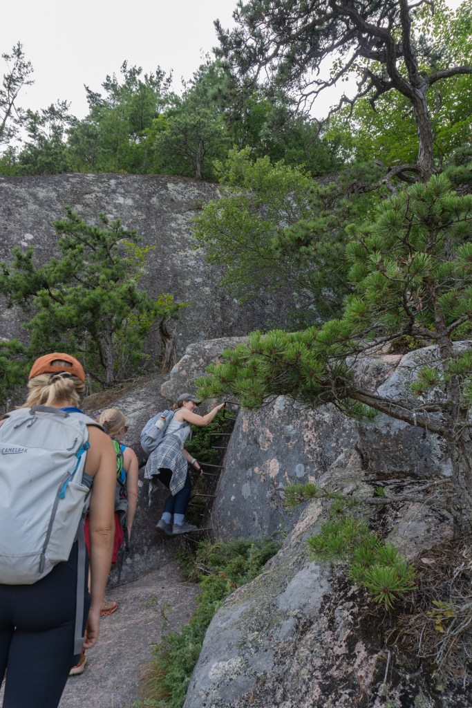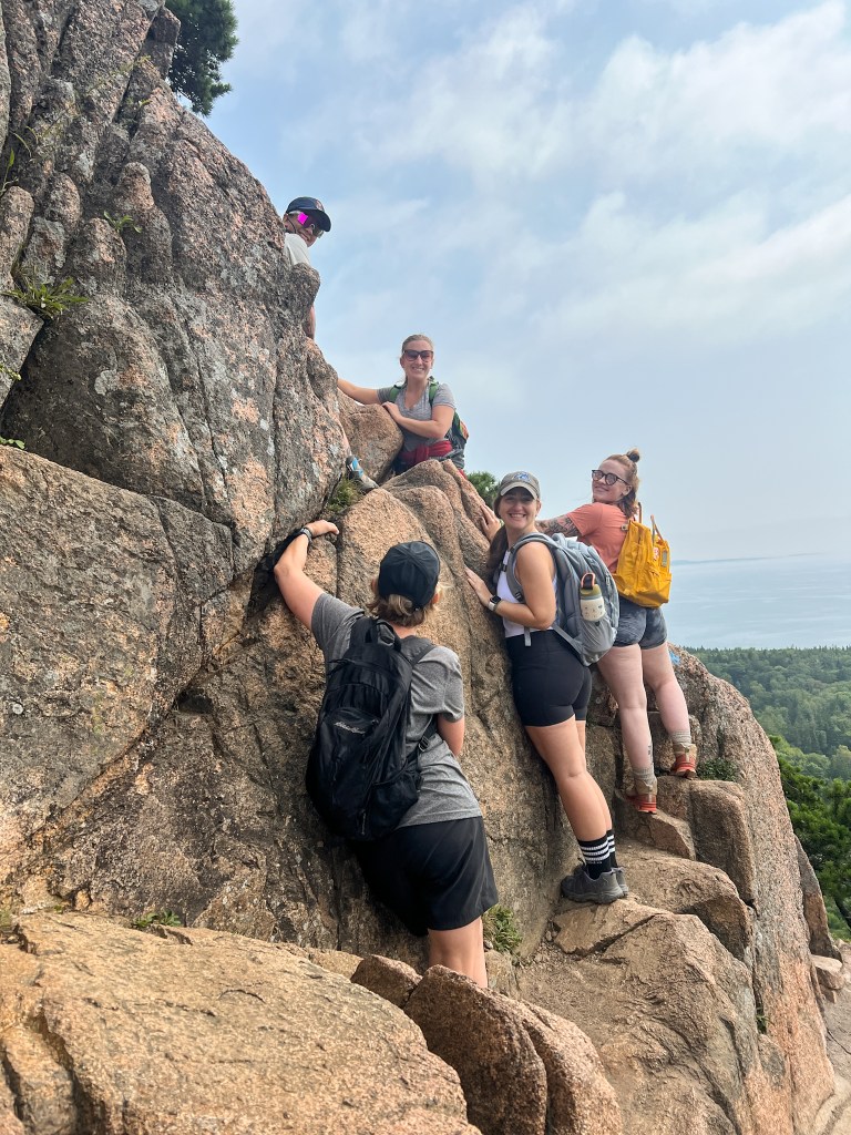 Day 3 was our first full day of the trip in the park. We got up on the early side to eat breakfast and get ready. It was a beautiful day and we headed into the park to do one of the most famous hikes in Acadia – the Beehive trail! It was such a fun, stunning hike. Due to the nature of the trail (narrow, steep, iron rungs and ladders), it’s slow moving, with lots of pausing to wait for the people in front of you to go over obstacles. We all had a great time and the view from the top was awesome! After the hike, we went into downtown Bar Harbor and had a picnic for lunch overlooking the harbor. Then, we were off again! We rented bikes and we rode through town until we got to the park and hopped onto the carriage road. We zoomed around for a couple hours until it was time to return the rental bikes. We had free time to walk around downtown, but then headed back to camp for dinner and relaxing.