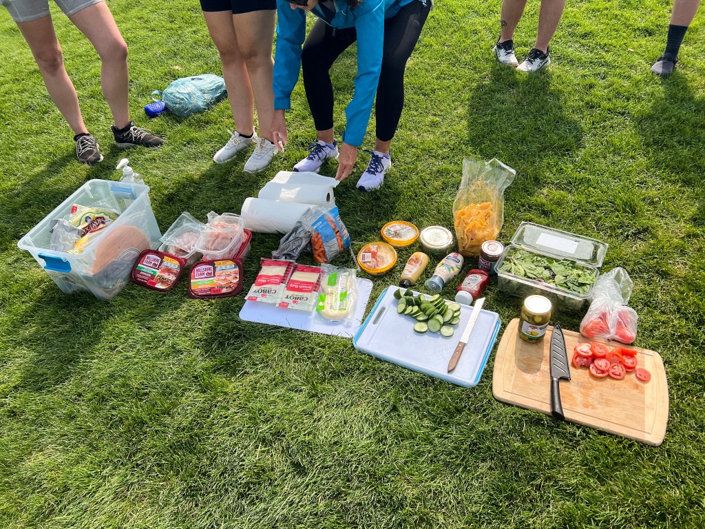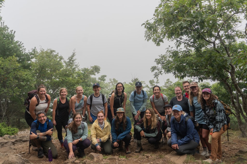 We split up into two groups – the fast hikers and the slow hikers. I was happily with the slow hikers. The fast hikers were heading back down before the slower hikers reached the summit, but we weren’t too far behind. Cassie, one of the podcast hosts was with the slow hikers, so it was fun getting to spend time with her. After the hike, we went to the campground to set up the tents. My roommate for the weekend was Kyra. It was a great match, we had so much fun and bonded over our love of books and dogs. Some people may think it’s odd to stay with a stranger in a tent, but honestly, it felt like I had known her forever! Our guides made dinner and we all ate around a fire together. It was really nice. There were people from all over the country. One girl that was supposed to join us was from Alaska but unfortunately she came down with Covid and couldn’t join us for the trip ☹