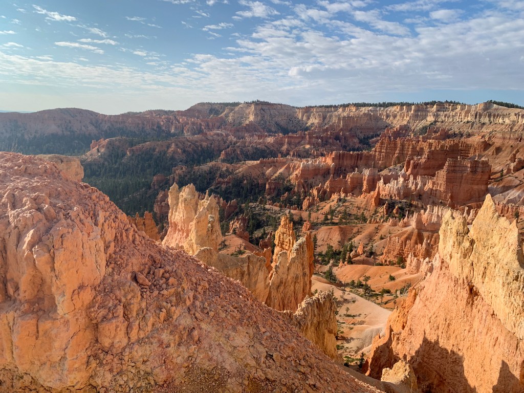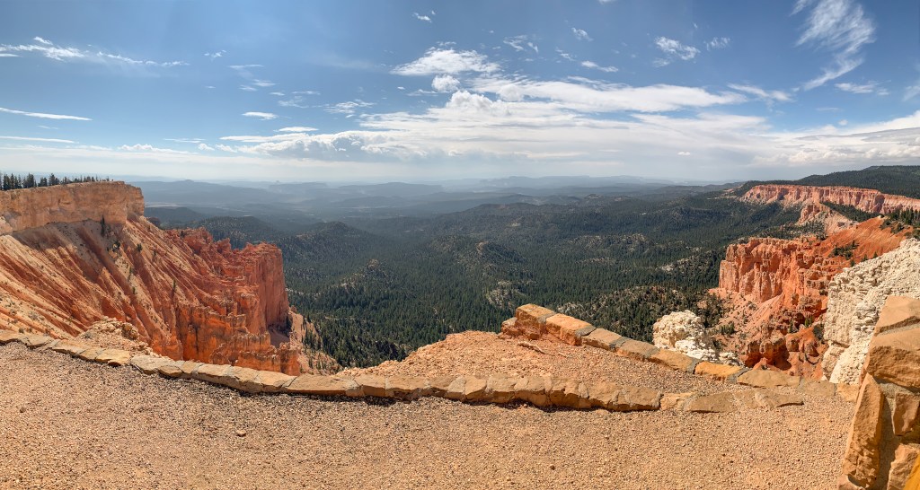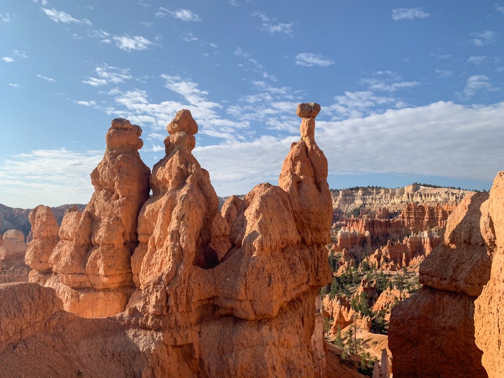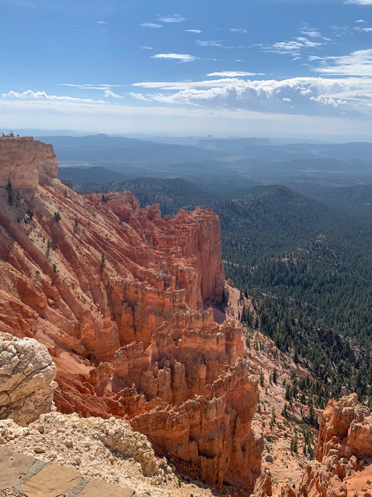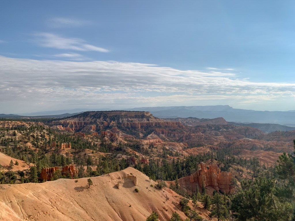 What stood out most to me was the contrasting colors. The orange and tan hoodoos against the bright blue sky with dashes of green from bristlecone pines and the puffy white clouds really set the most beautiful scene for a hike. We unfortunately had our time here cut short by a huge storm. It was some of the craziest rain I’ve ever seen! We ate lunch in the car to see if the rain would pass but it didn’t 😞 We ended up leaving the park earlier than intended. I have so much more to explore there so I will definitely be making a return trip. It’s such a stunning park!