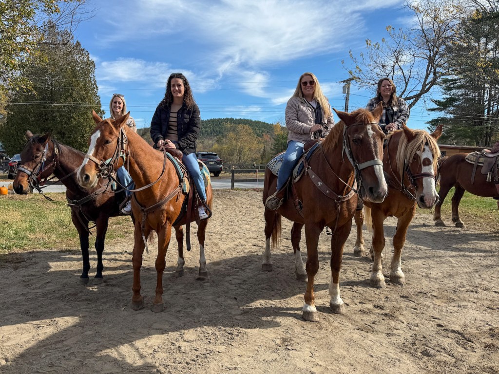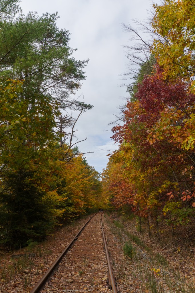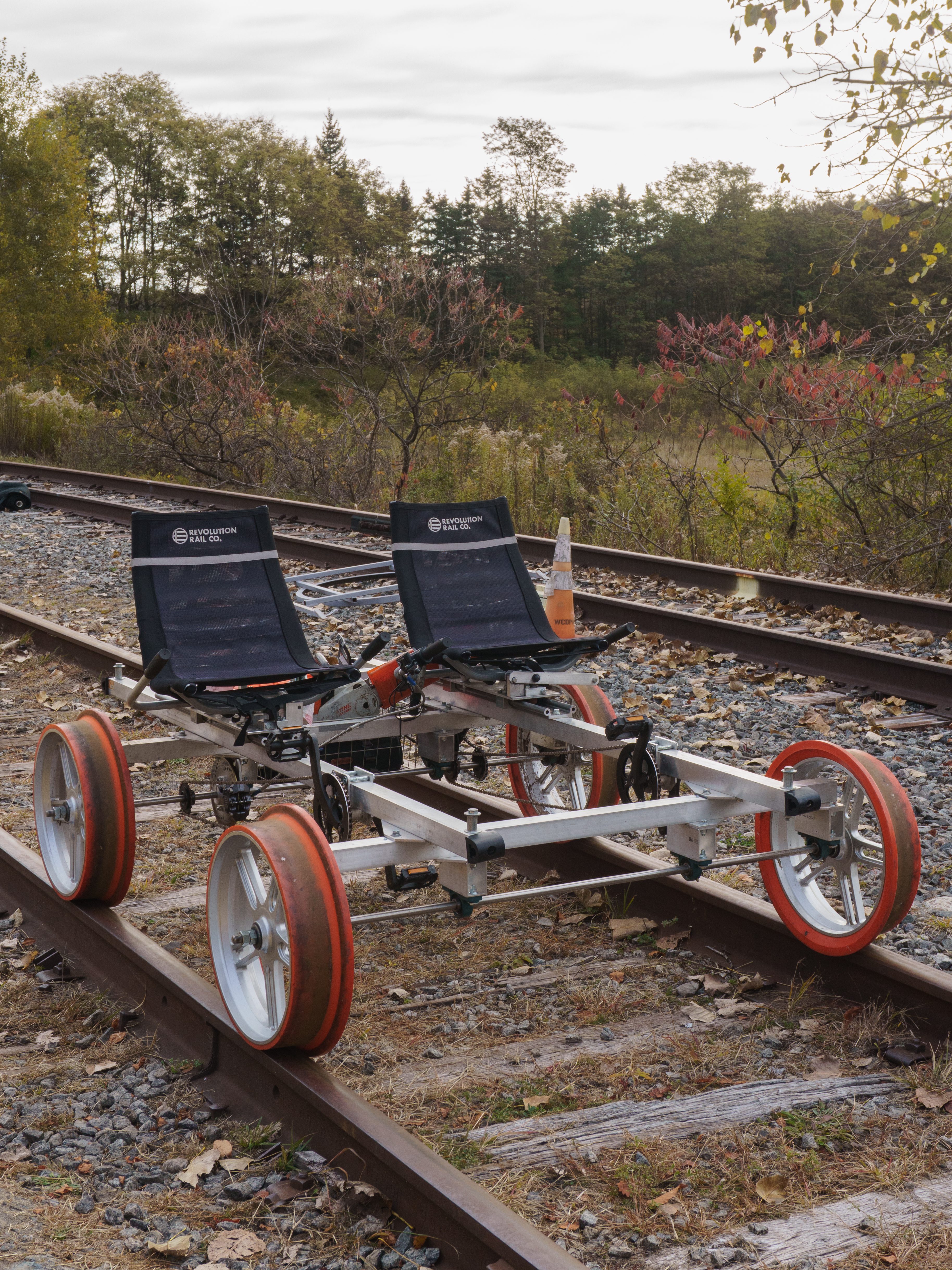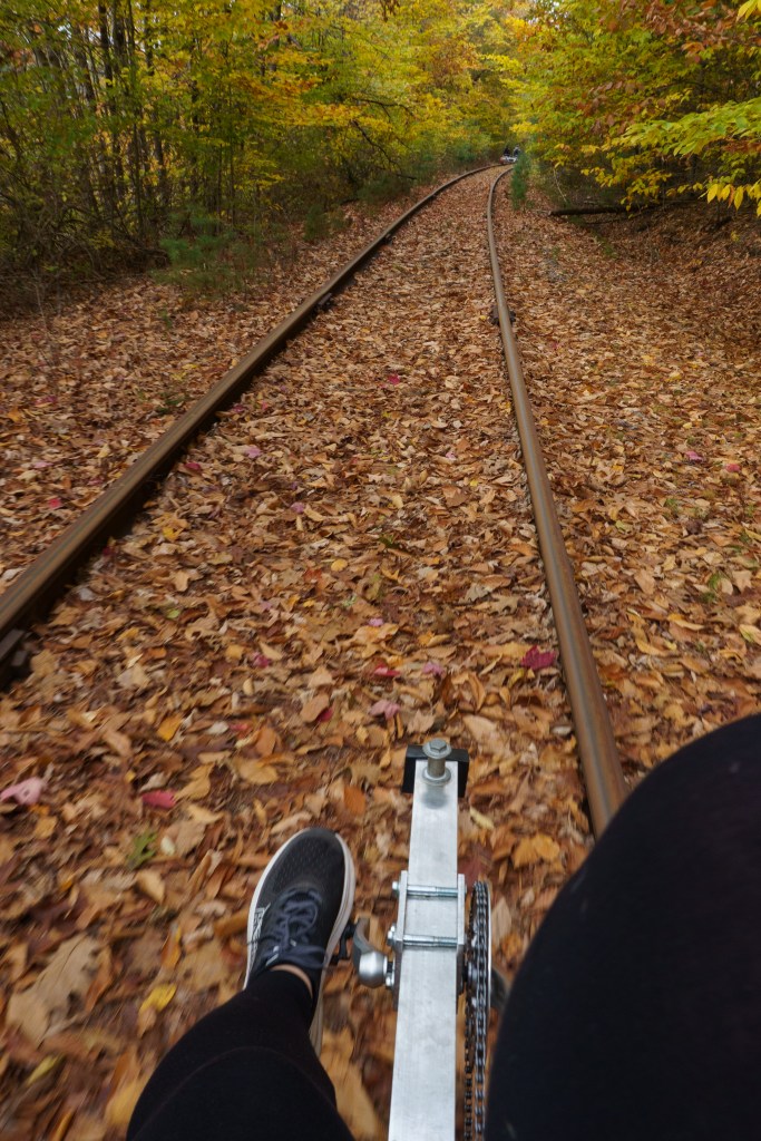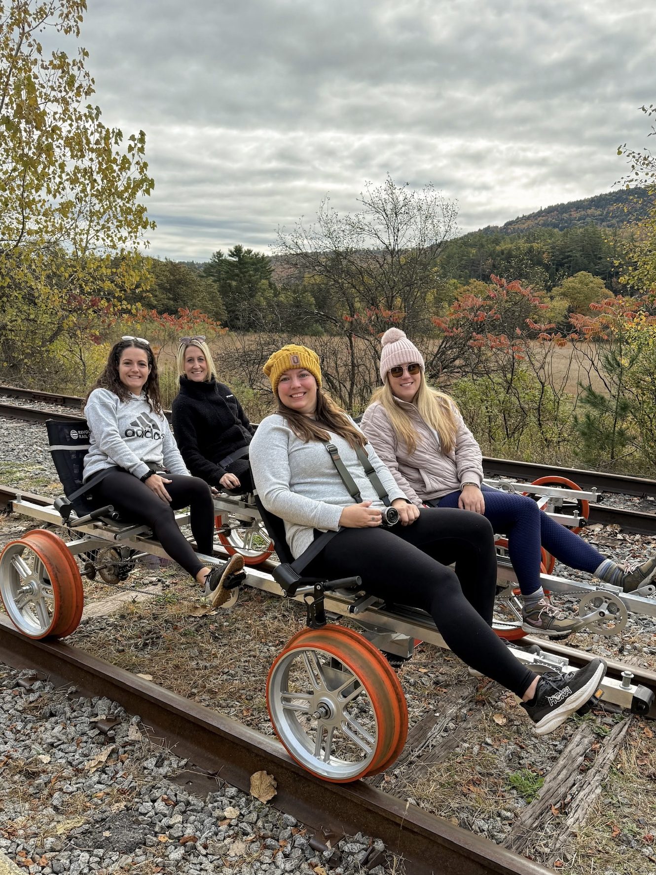 One thing we hadn’t loved about our trip to Savannah was the lack of activities there, so when we were looking at trips for 2025, we wanted to make sure we went to place that had lots of activities. So far in Lake George we had gone hiking twice and went horseback riding. Day three started with a new activity for all of us – Rail Biking! This is an activity that’s come into popularity (at least in the Northeast) in recent years. It takes old, abandoned railroad tracks and gives them a new purpose! Our railbike sat 4 people and had a large basket on the back for bags or anything you might want to bring with you. It’s a pretty low-impact activity so I think it would be great for people of any age to try! We biked for a few miles and let me tell you, that might be the most beautiful way to see the foliage. It was so beautiful! We saw a few deer but no bears sadly!