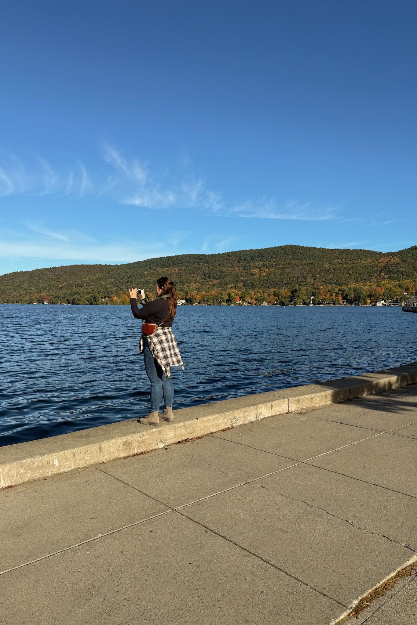 We decided to check out a little bit of downtown Lake George. First, we went to another brewery for a beer. It was chilly out but sitting in the sun outside was still nice. Afterwards, we walked around a bit but found that the majority of stores were closed for the season, which I thought was so weird. It was peak foliage when we visited and I was expecting so many more tourists and leaf peepers! Since there wasn’t a lot open, we made a final stop at the Mystery Spot overlooking the lake. It’s hard to explain but basically there is a marked spot that you stand on and if you face the lake and say something quietly, people around you can barely hear it but you’ll hear it really amplified in your own ears, like you talked into a microphone or something. It’s really bizarre phenomenon. We got pizza for dinner and just ate at the treehouse and hung out. Since there wasn’t a tv in the living room, we ended up watching a movie (The Woman in Cabin 10) on Sam’s iPad propped up on a windowsill before bed.