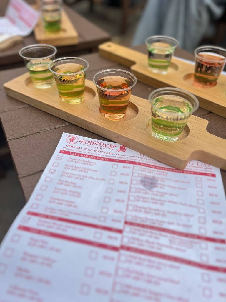 After we left here, we drove south to do an afternoon hike at The Pinnacle, which was recommended to me by an Instagram friend (follow @alyshawexplores for all things New York and beyond!). The hike was lovely. We had some really nice autumn colors; it was warm and had stunning views of Lake George from the summit. After taking pictures and resting for a bit, we hiked back down to the cars and then headed to our Airbnb. It was really cool looking online but wasn’t as great in person unfortunately. It was a “treehouse” with three sections: a main living area, kitchen, bathroom and loft with a queen-sized bed, then a small outdoor sitting area, and then another bedroom with a half bath, all connected by a large elevated deck. The concept was very cool but it wasn’t as enjoyable as we hoped. Unloading the car was difficult – you had to use wagons to drag your belongings up to the treehouse because they didn’t allow cars right next to them. Four girls staying for three nights? Yeah…we had a lot of luggage and supplies. Then the ladder going up to the loft was very narrow and a little slippery. It was hard to manage getting any luggage up there. The kitchen was tiny, which was okay, but it had limited utensils and supplies. The living room was a very small: old love seat, a hard wooden chair and a coffee table. Luckily, we had brought some camp chairs so there was enough seating for all of us. There wasn’t a TV in the living room either, which was fine, but could be a deal breaker for some people. We had beautiful weather during our trip but if it rained the whole time you were there, you might be uncomfortable and bored being trapped in the house. The property was called Trekker and they had some other types of stays at the location like yurts, cabins and little hobbit houses built into the hill. If you like unique stays, Trekker may be the place for you. I don’t think I’d stay there again, but we still had fun. That night, after we got settled in, I made dinner for everyone and we played games and chatted nonstop.