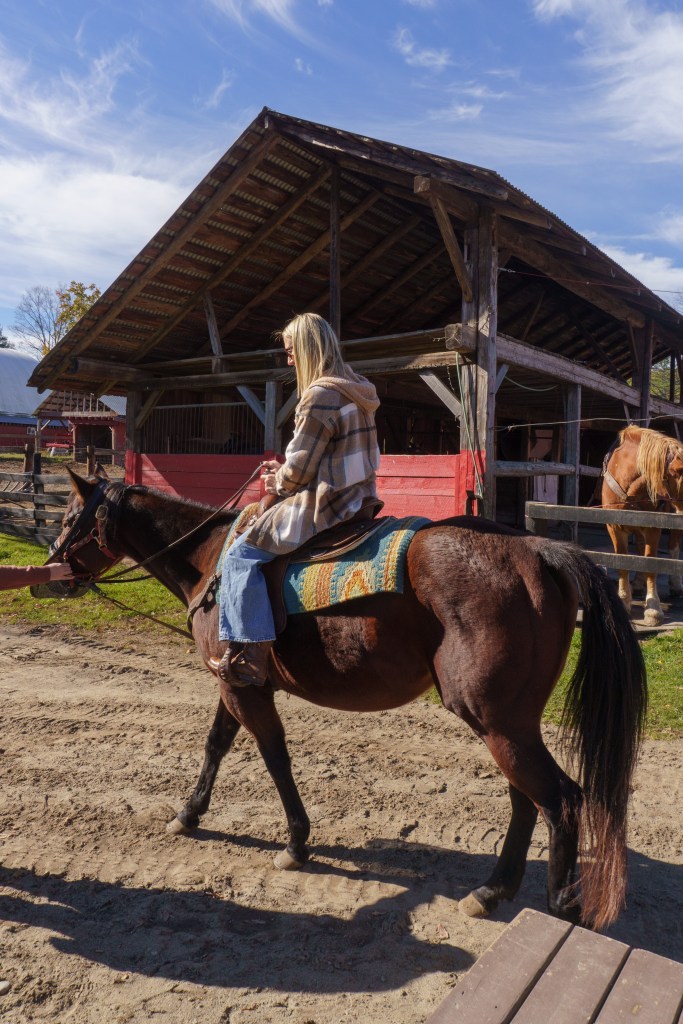Day two started slowly. We had a big breakfast at the treehouse and then got dressed for the first activity of the trip – horseback riding! This was a big deal because Tanya is scared of horses and Cindy was terrified of going too. I hadn’t been horseback riding since I was a kid but I was really excited for it. Sam had been most recently, on a trip to Grand Tetons National Park, so out of any of us, she was probably the most comfortable riding. On the tour, it was the four of us and one solo rider. The guide led us through the woods surrounding the stable property. We had so much fun! My horse’s name was Daniels. He was a big boy but an easy ride. I didn’t have to do much work to guide him. After the ride ended and we had pictures taken, we stopped for lunch at a brewery. It was fine, but the vibes were kind of weird there.