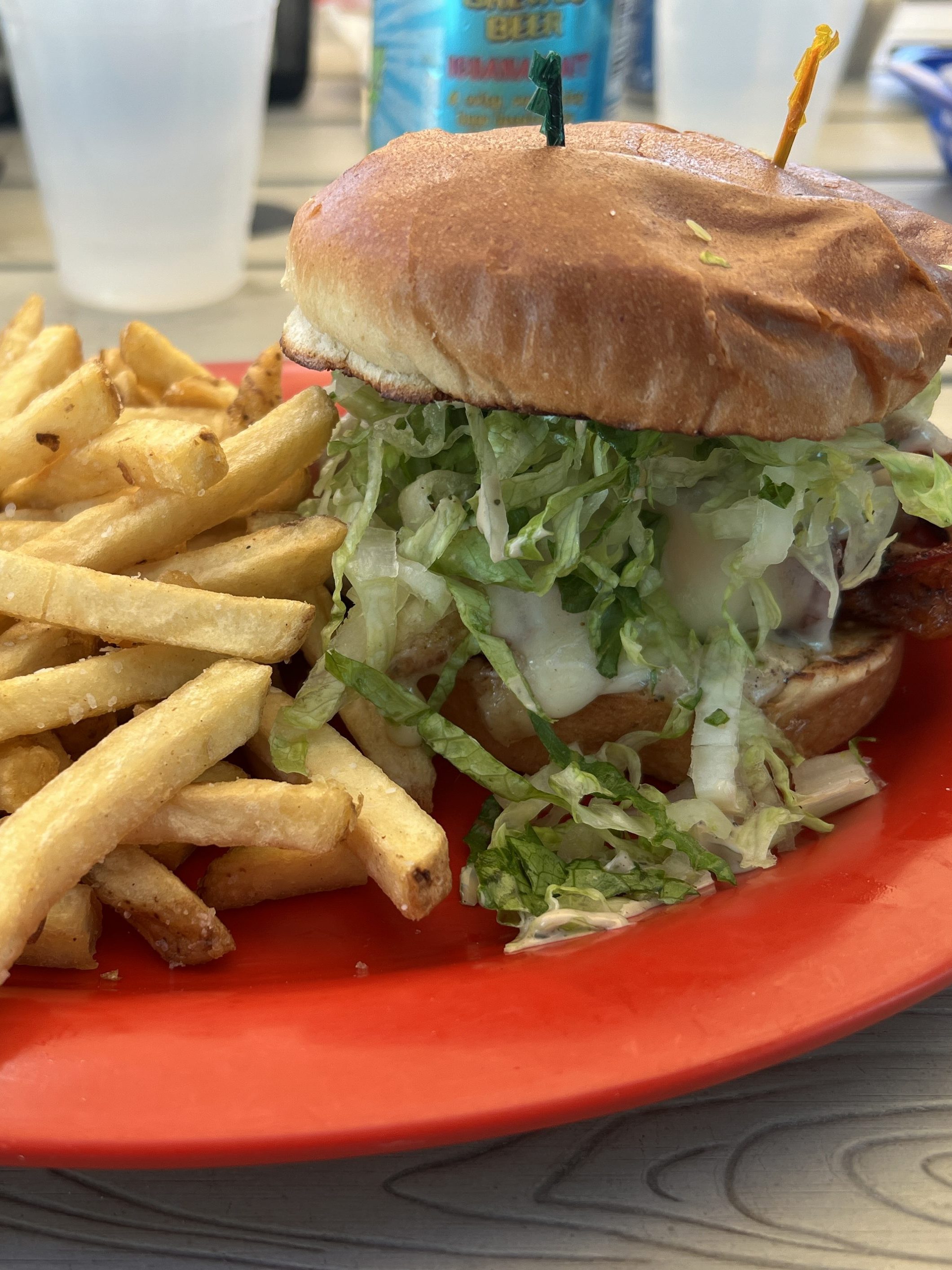 Our flight out of Boston was a Saturday morning. Of course, the morning we left, there was a snowstorm. We were taking the bus to Logan Airport, and luckily, we weren’t far from the bus station, because the roads were gross! Our flight was on time, but we did have to go through the deicing process first. After an interesting morning, our flight was uneventful and we landed in Key West right on time! Walking out of the airport into warm sunshine was so wonderful after weeks of brutal cold. We headed directly over to our hotel and were able to check in early. To give you an idea of the layout of island – we stayed on the very north end of the island. Duval Street is the popular tourist area downtown, which is at the south end of the island. The island is about 4 miles long and 1 mile wide, so it’s easy to get around without a vehicle. The Keys are connected by the Overseas Highway so if you do have a car, you can travel the highway to visit multiple Keys. You can also ride bikes along the bike path that hugs the highway. Since we were on the north end of Key West, we decided to walk over to Cow Key, the next island over, to grab lunch. It was a quick half-mile walk, so that was convenient! We went to a spot called Hurricane Hole, which sat right on a marina. It was so nice to be outside in the beautiful weather watching pelicans diving into the water and snacking on fish. I got a beer with my lunch – Iguana Bait Kolsch – from Florida Keys Brewing. Iguanas are invasive in the Keys, but I was still so excited whenever we saw them on our trip.