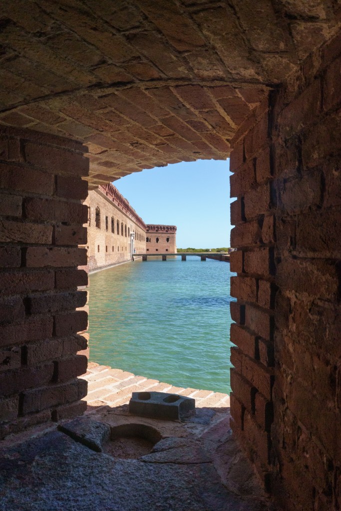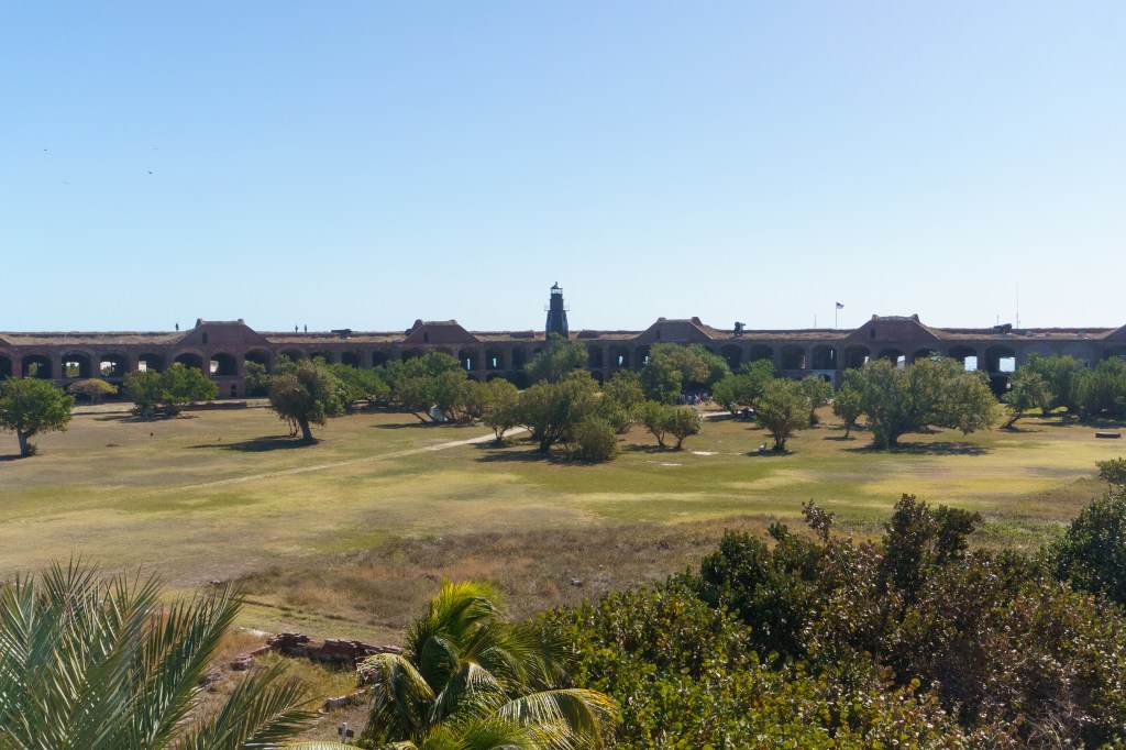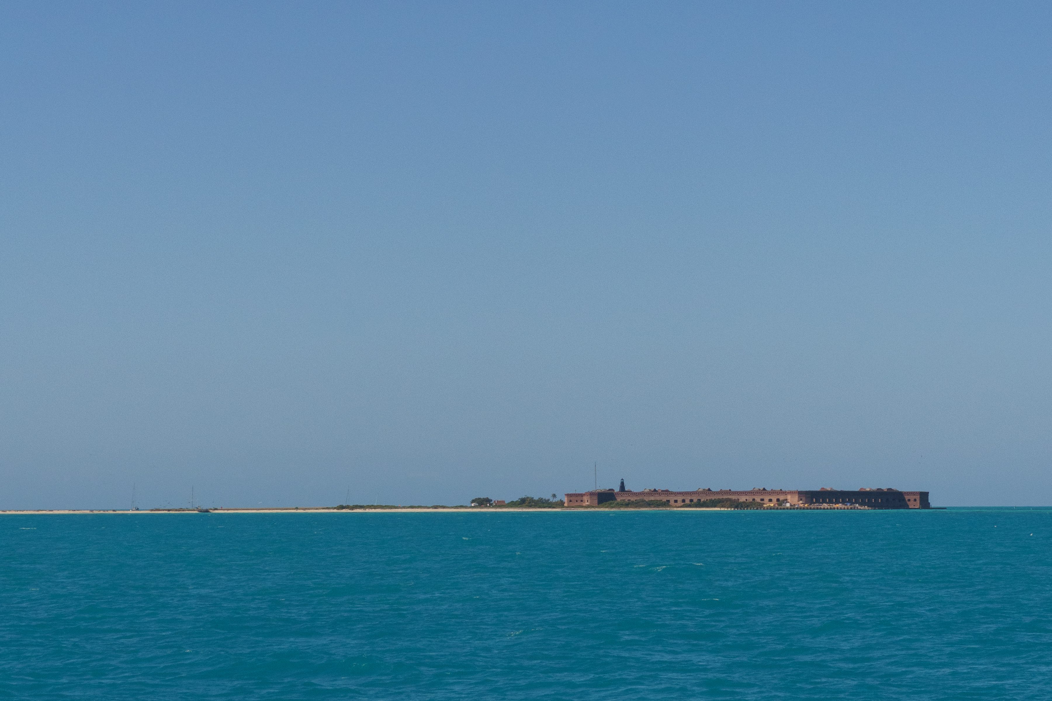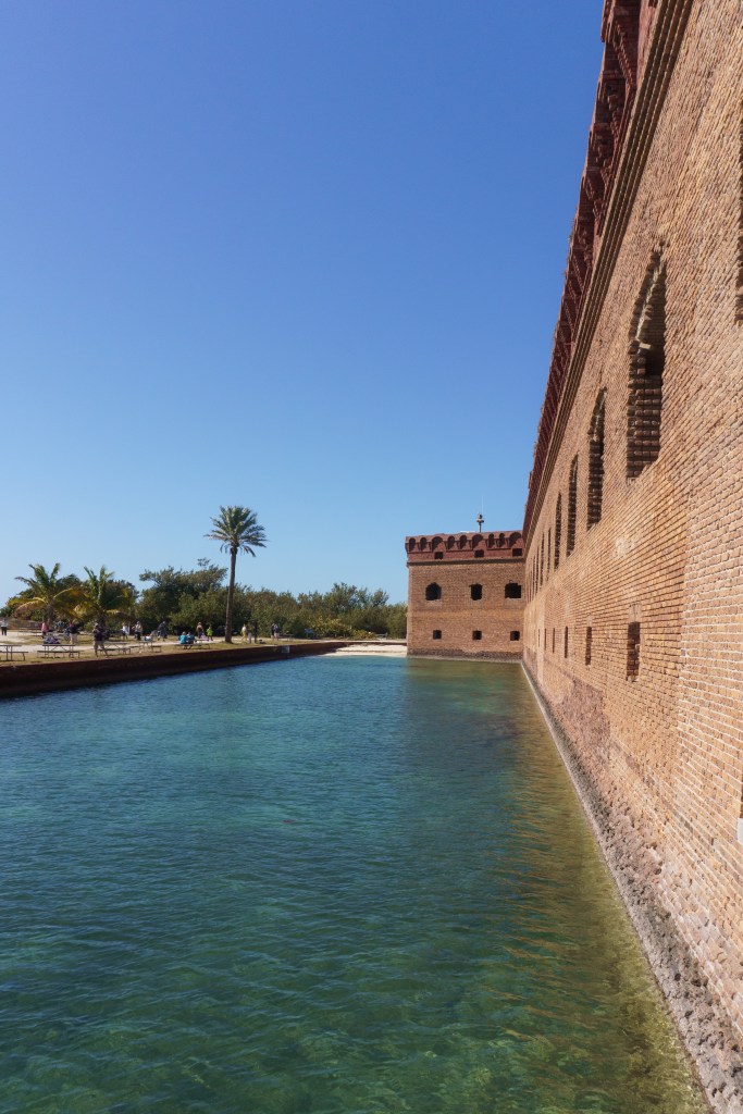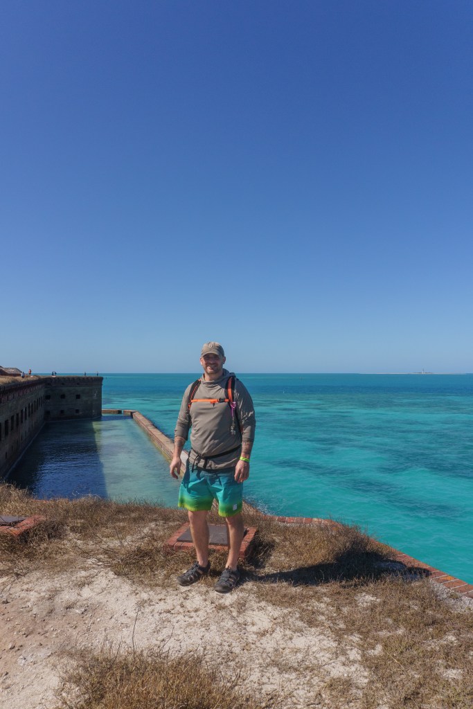 Day three was a busy day for us. We woke up early and rode our bikes about three miles to the marina where the Yankee Freedom, the ferry that would take us to Dry Tortugas National Park, was docked. We arrived right at 7 AM and checked in. Boarding happens in numerical order of when you arrive and check in. Since we checked in right at 7 AM, we were able to board before a lot of other people and scored a seat on the upper deck of the ferry. Breakfast was provided on board (bagels and cream cheese, fruit, coffee, tea, etc.). The ferry ride was a little over two hours long. During the ride, the park ranger would pop on over the loud speaker and point out different things, like landmarks and protected areas. Once we arrived at the park, the park ranger offered a 45-minute tour of the first level of Fort Jefferson, the large historical fort on the island, or you could do your own self-guided tour of all three levels, which is what we did. We started by visiting the tiny park store and then explored the fort. The roof level was really interesting with multiple cannons and little hidden passageways. The water around the island was stunning, I couldn’t get over how bright blue it was.