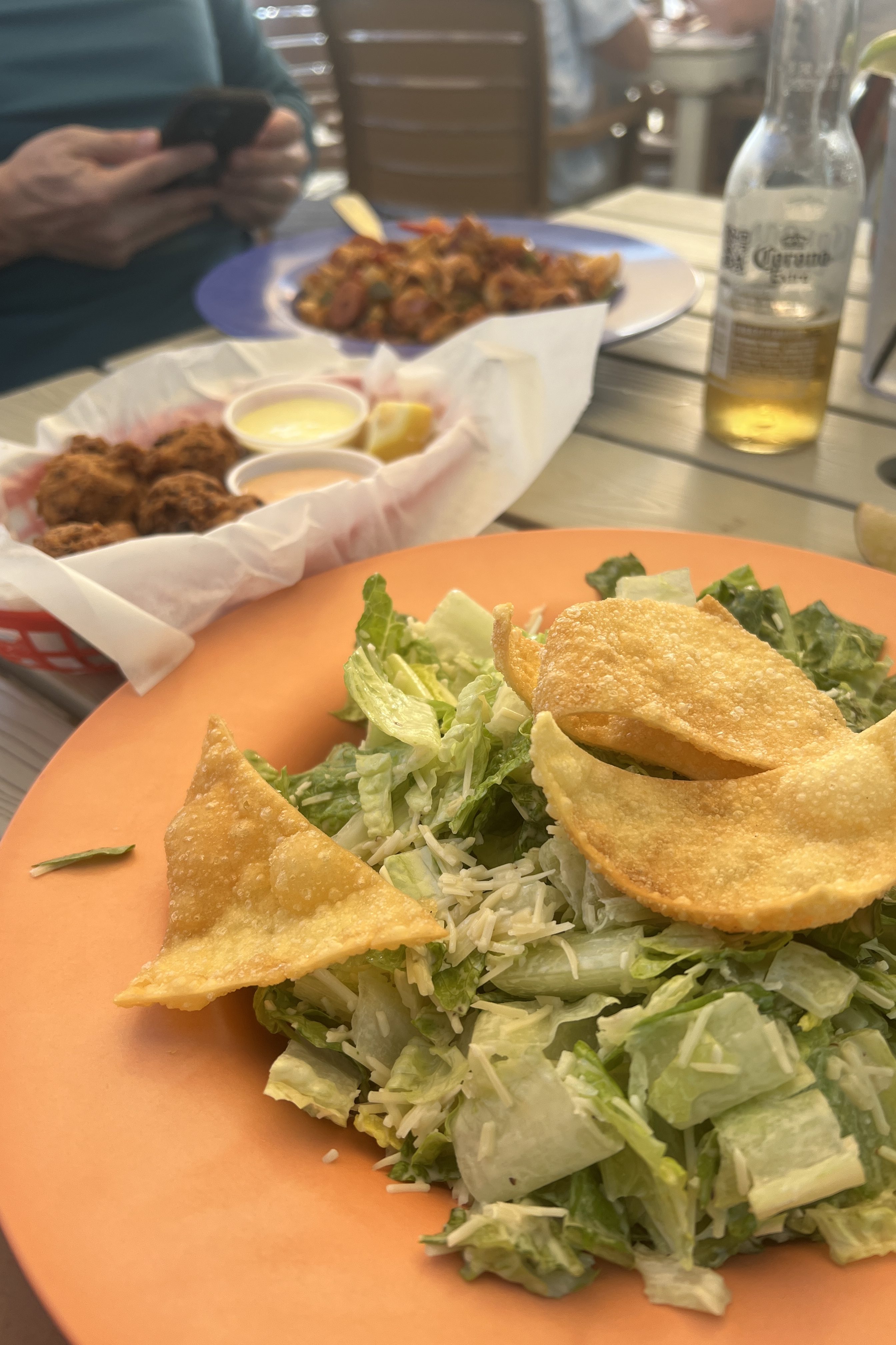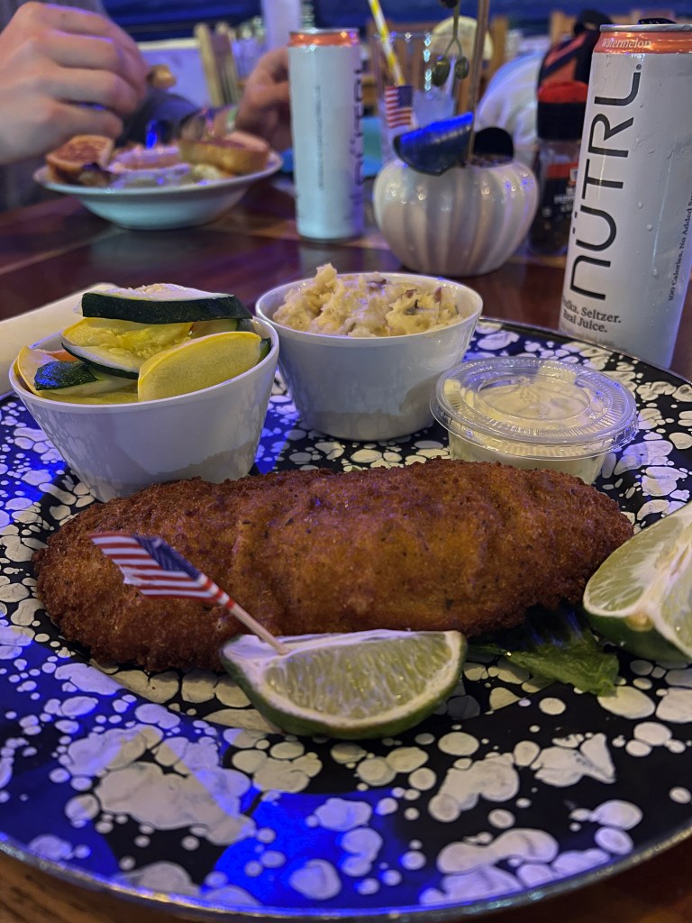 After we explored the fort, we headed back to the boat to grab lunch, which was included with our tickets. They had large sub sandwiches, some snacks and beverages. We quickly ate on the dock and then grabbed snorkeling gear (also included in the ticket price). We snorkeled at South Beach around the moat walls. The water was calm and shallow; it was nice being able to ease my way into it and feel more comfortable. I was still a little nervous to swim further out, but I did have more fun snorkeling at the park than I did on the tour. However, I wish we had done the park snorkeling first, because I think I would’ve felt more comfortable on the snorkeling tour after getting a little practice in first. After we finished swimming, we walked out to Bush Key to see the Magnificent Frigatebird colony. This part of the island actually closes February through September for nesting season, so we were lucky to be able to check it out before the closure started. The ferry left the park at 3 PM for the long ride back to Key West. For people who wanted to camp overnight, they have few campsites available on the island, but they book out far in advance so plan ahead! When we got back to the marina, we biked back to the hotel, making a pit stop at The Stoned Crab for dinner. I got the yellow tail snapper, which was a new fish for me – it was pretty good!