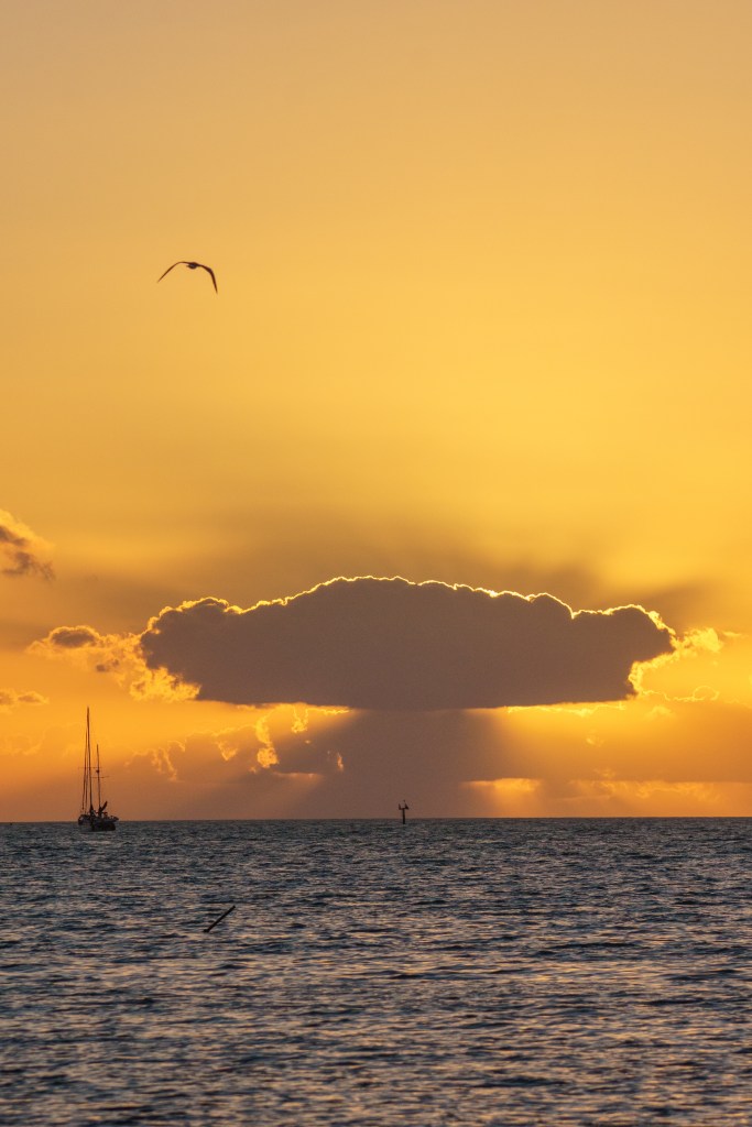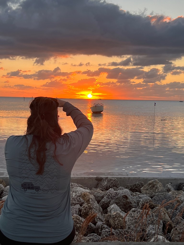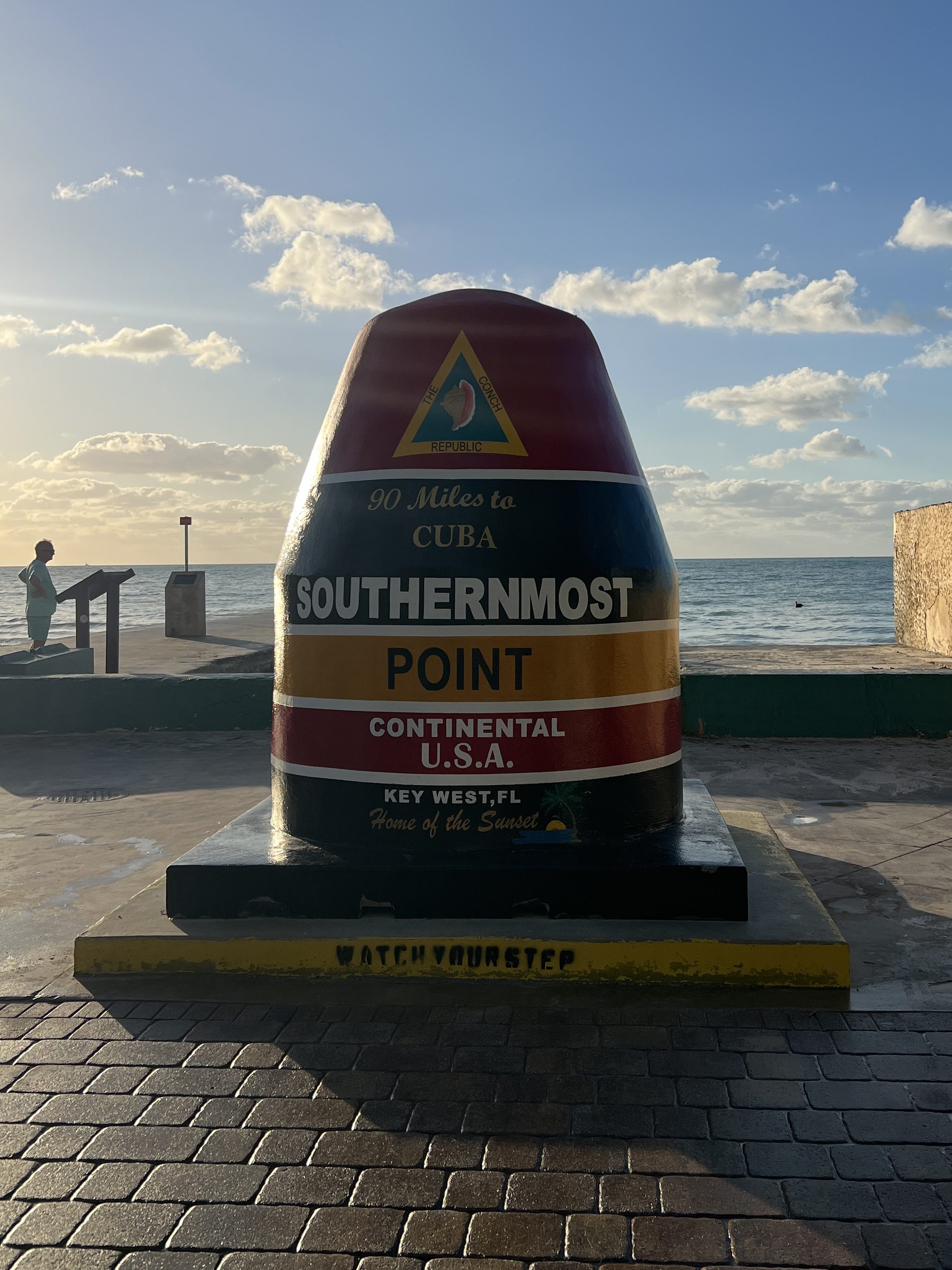 We had to return our bikes on the afternoon of day four, so we wanted to spend as much time using them as possible. We started the day biking along the east side of the island and watching sunrise along the seawall. It was so beautiful – cloudy, but very dramatic. After watching sunrise, we continued on our bikes down to Higgs Beach. The bike ride was so nice. You are allowed to bike on the sidewalks in Key West, but while a lot of them are narrow, the ones along the outer edge of the island are very wide, making for a pleasant ride. Once we got to Higgs, we locked up our bikes and walked to the Southernmost Point of the Continental United States. There is a large concrete buoy that you can take pictures with. By going first thing in the morning, we were able to get pictures without having to wait in line. From there we walked over to Moondog Café to get breakfast. I had a delicious breakfast sandwich and a watermelon mimosa. It was such a nice morning sitting out on the patio people-watching. Before we left the café, we grabbed some to-go pastries to have for breakfast the next morning. We walked back to our bikes and then had a leisurely ride back to the hotel.